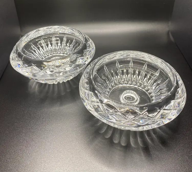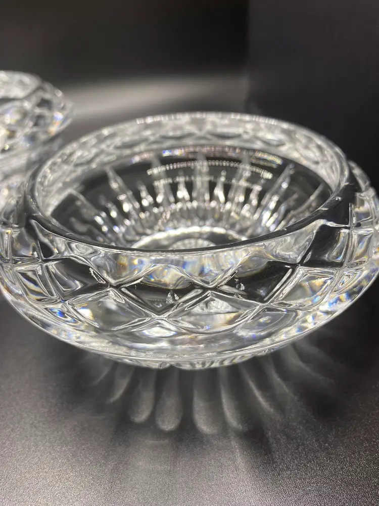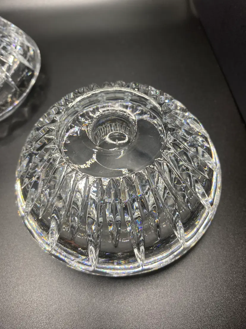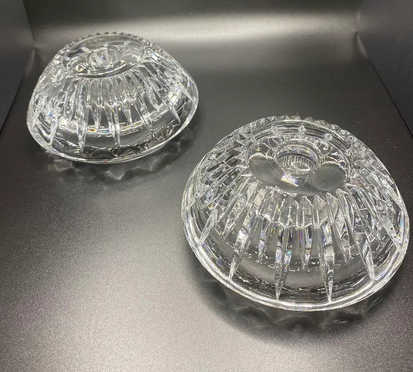 2 Princess House Crystal Highlights reversible candle holders for pillar, taper or votive candles. Candle holders are 4.5” wide x 2.25” tall and they are in good condition with no chips or cracks.