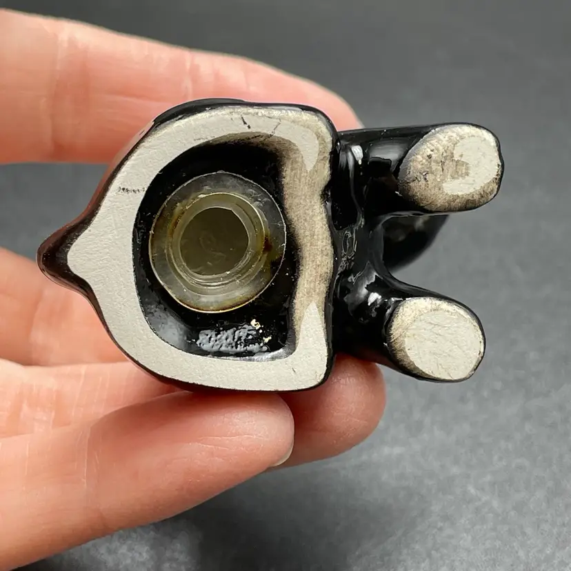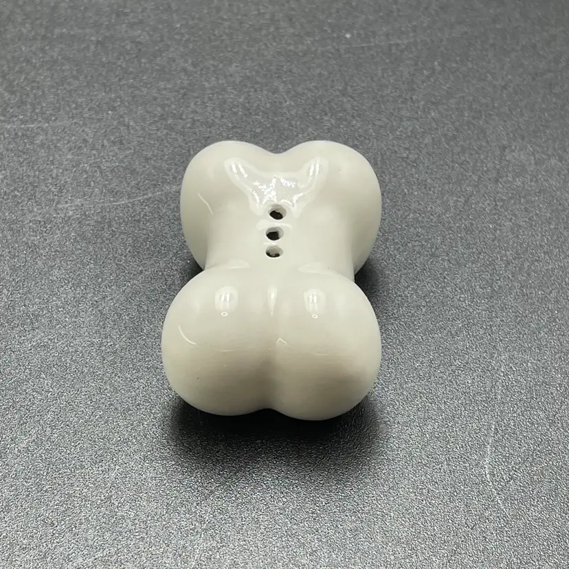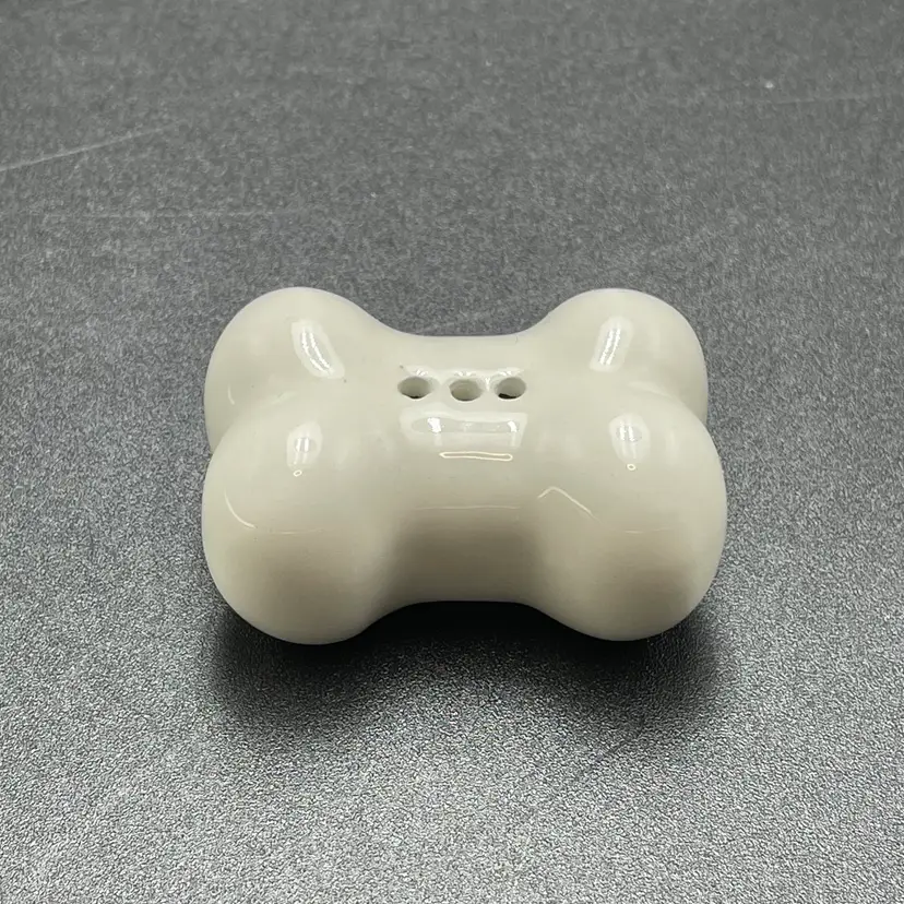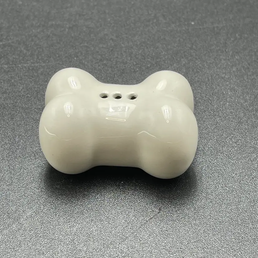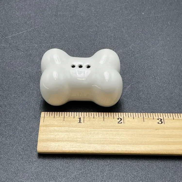 This is a set of 2 dog and bone salt and pepper shakers. The dog measures approximately 2" tall. The bone is 1" tall x 1.75" long. No chips or cracks.