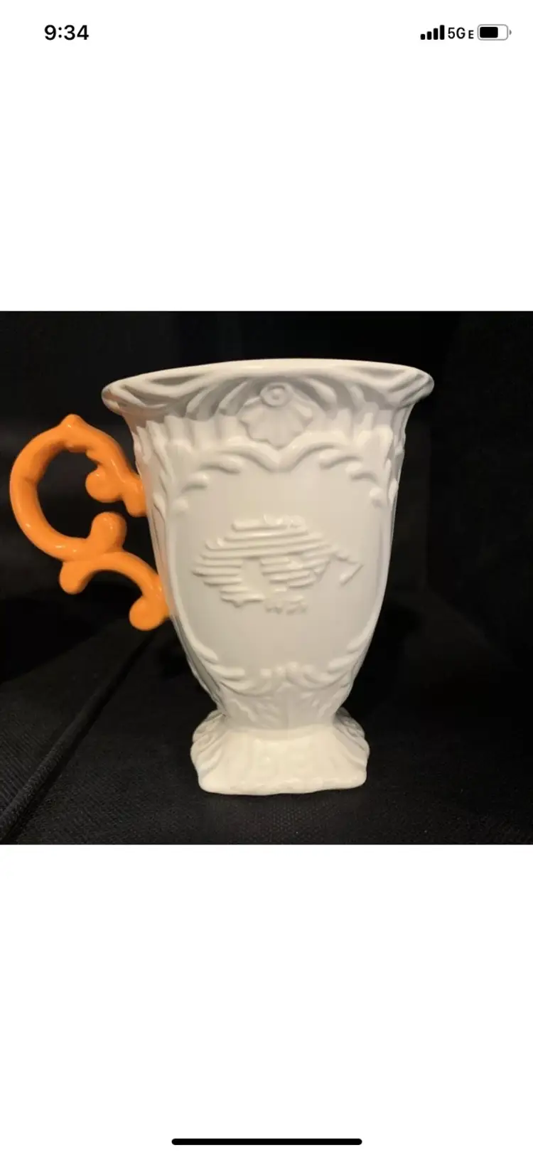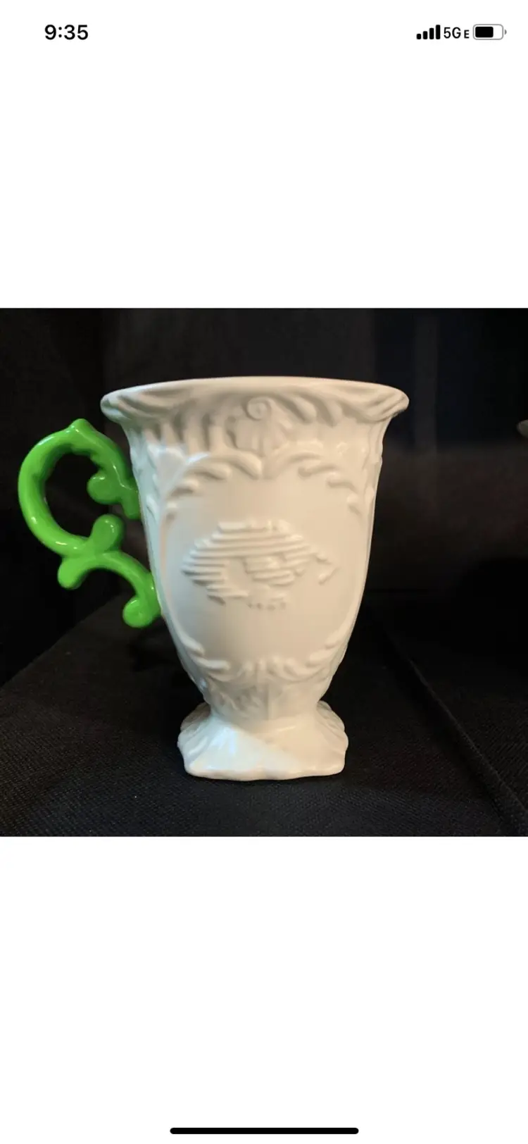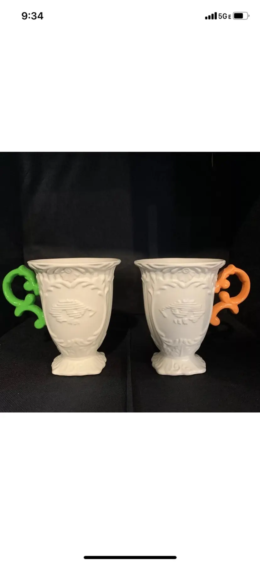 Indulge in the beauty of these exquisite SELETTII-WARE SELAB mugs, crafted with fine porcelain and made in Italy. These baroque style cups are perfect for savoring your favorite beverages. The set of two mugs feature a stunning white color with a pop of vibrant orange or green that adds a touch of class to any table setting.