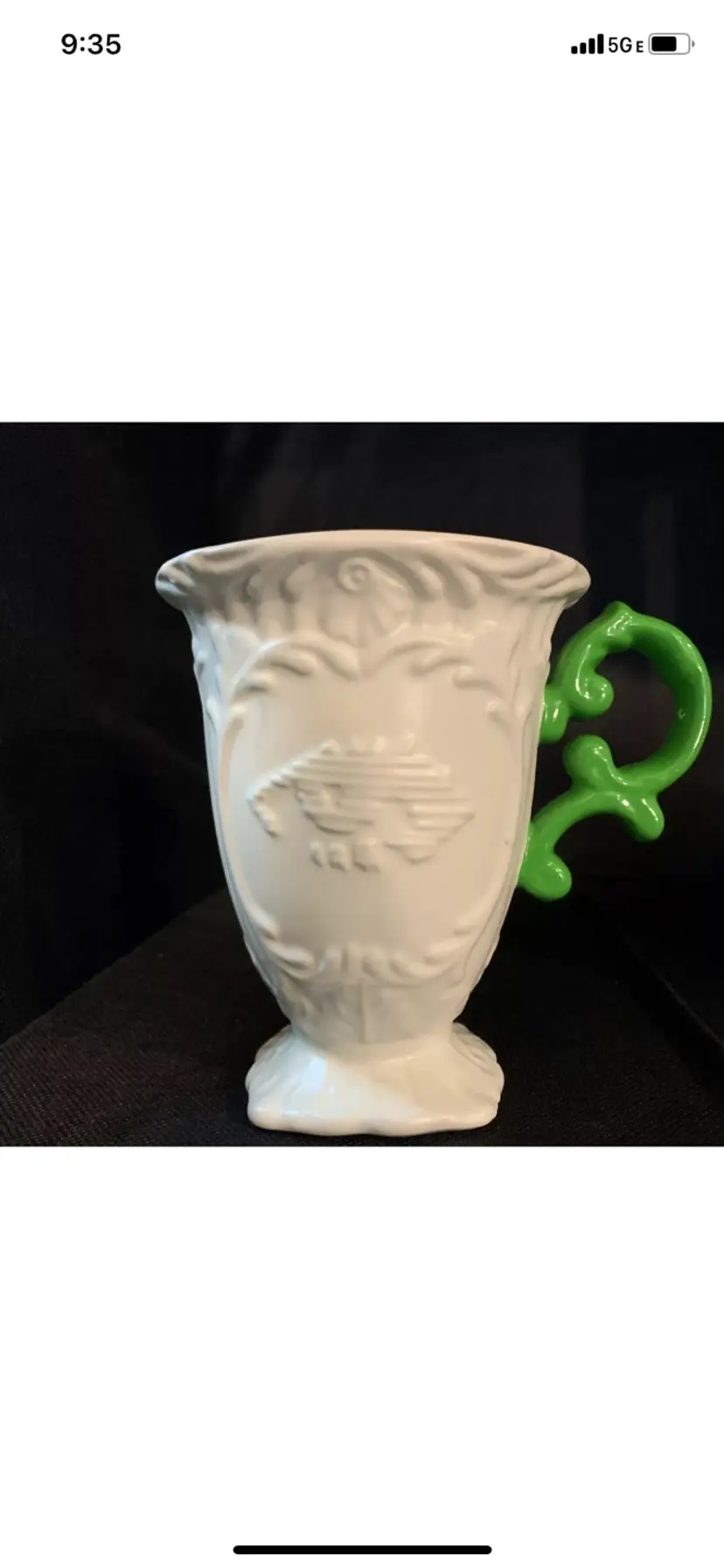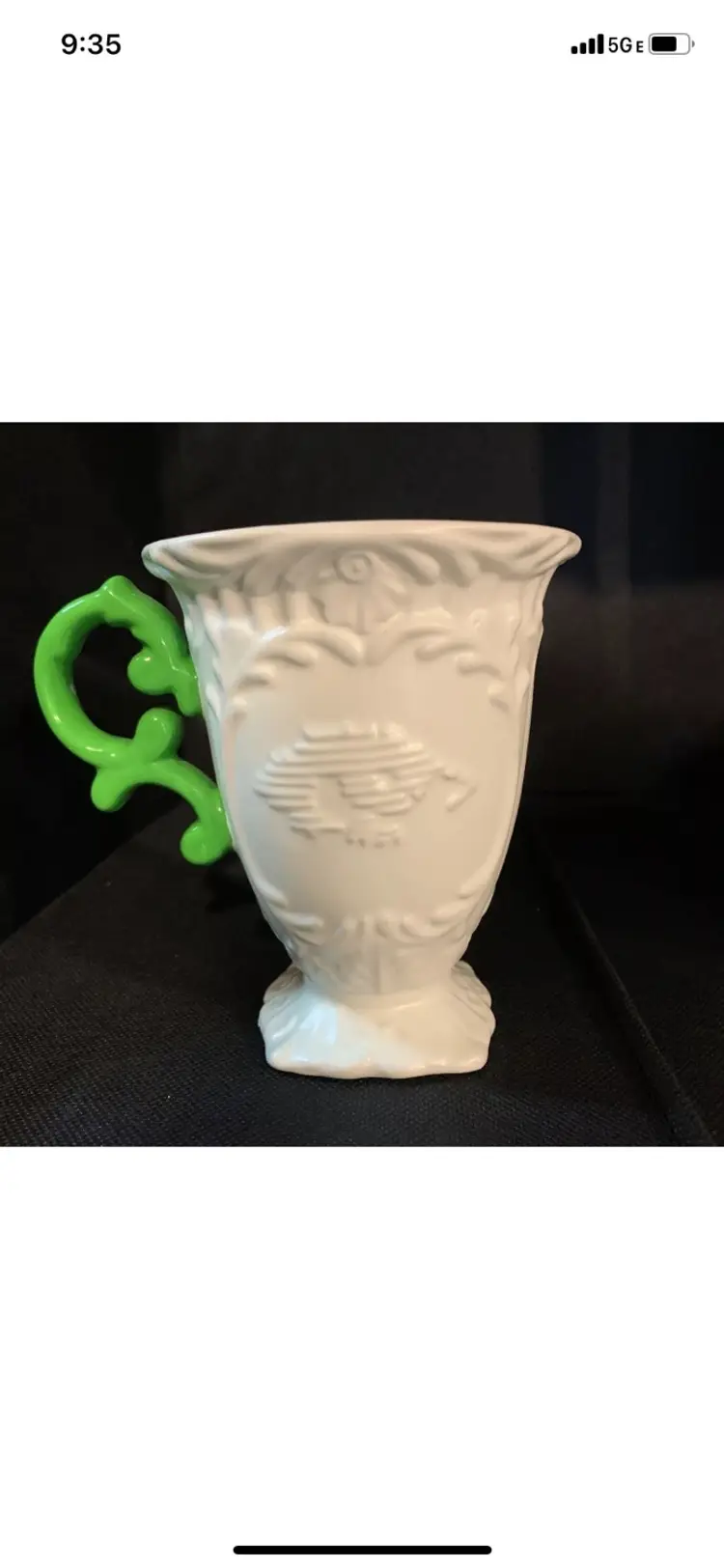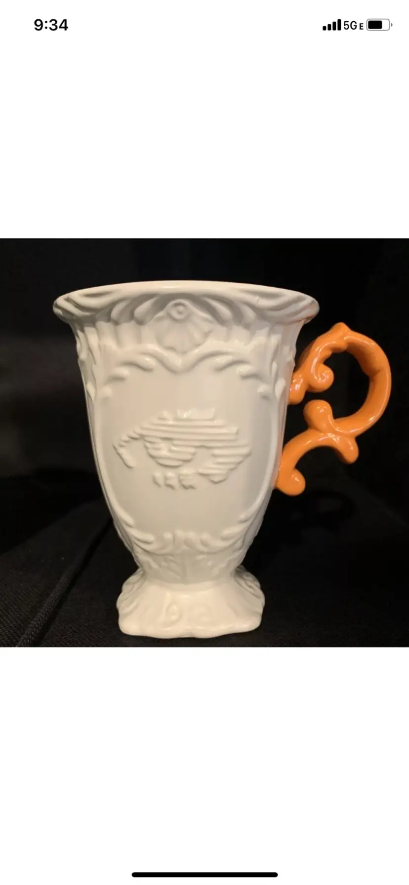 Indulge in the beauty of these exquisite SELETTII-WARE SELAB mugs, crafted with fine porcelain and made in Italy. These baroque style cups are perfect for savoring your favorite beverages. The set of two mugs feature a stunning white color with a pop of vibrant orange or green that adds a touch of class to any table setting.