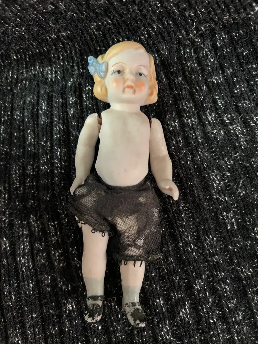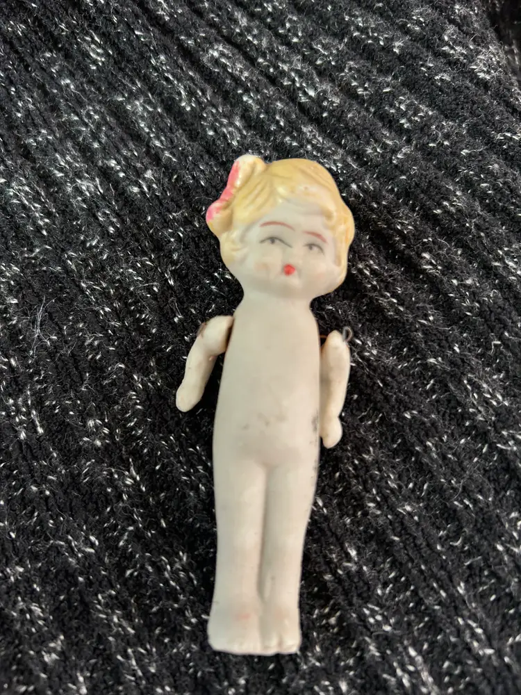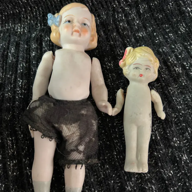 Sm is 3 1/2” tall and lg is 6”. The large doll has broken thumb.