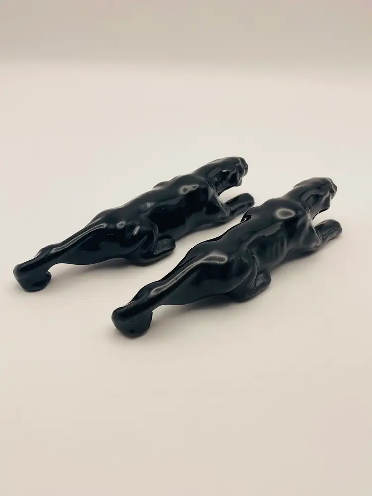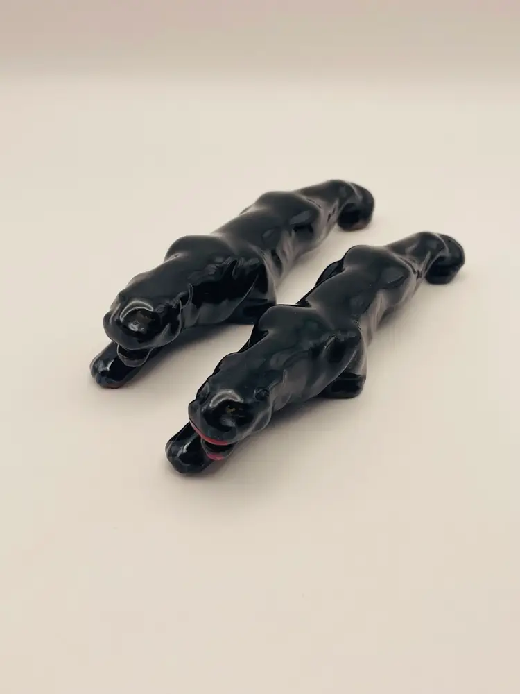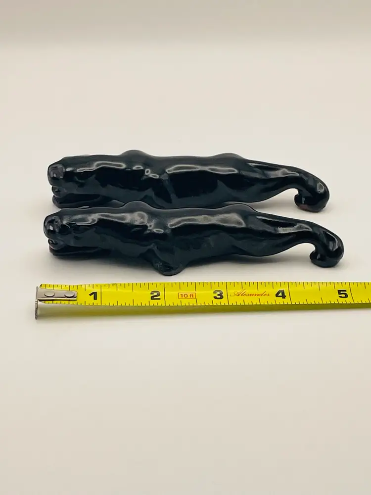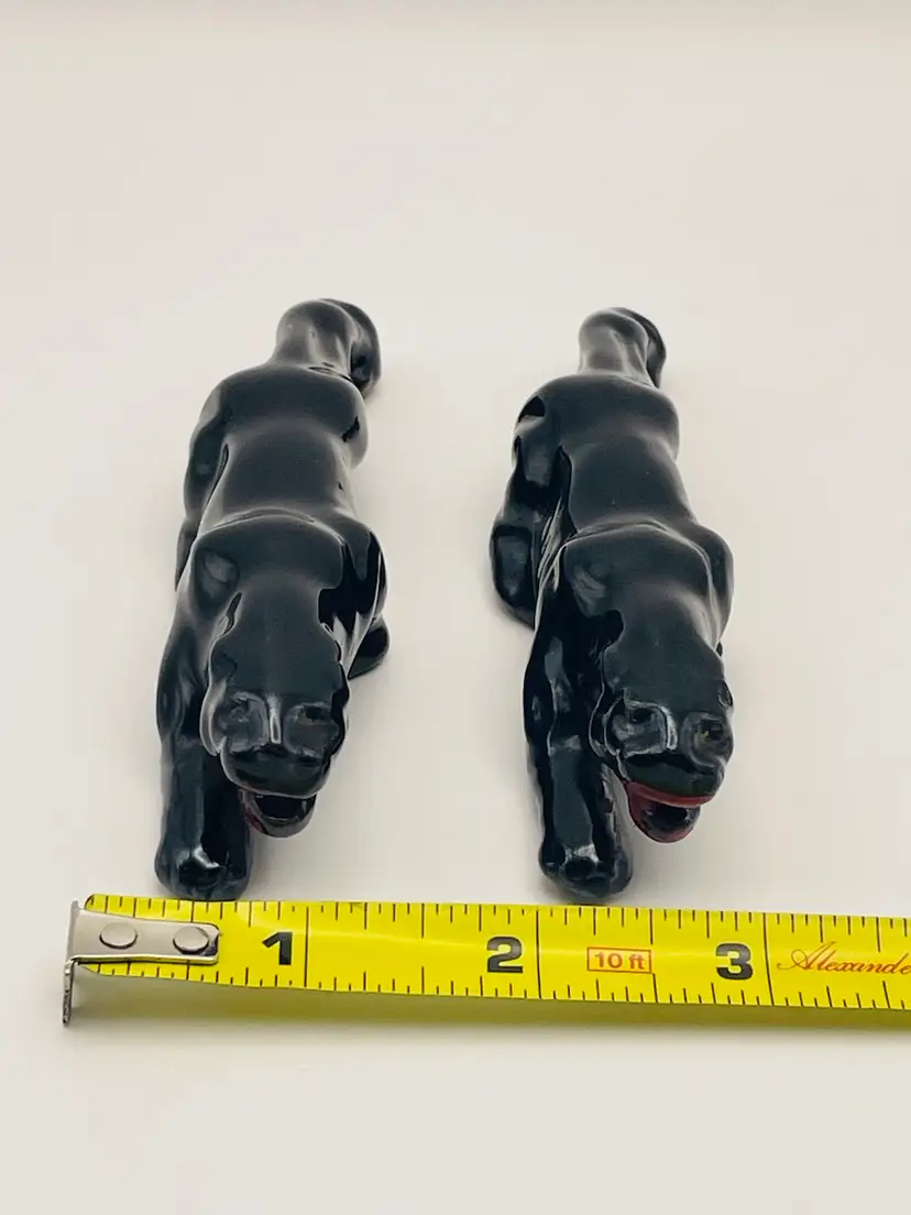 Set of 2, Vintage, Ceramic/Redware, Black Panther, 5" Figurines, MCM, Japan (Small repair on ear of one panther, as shown)