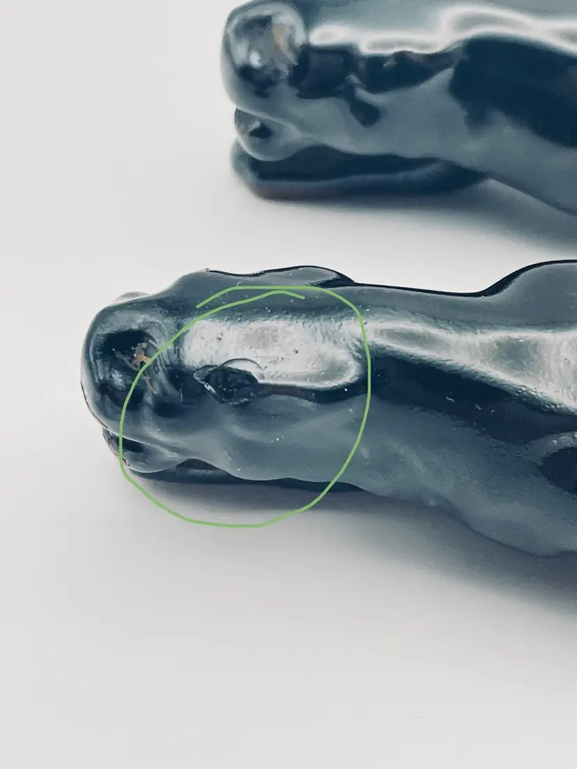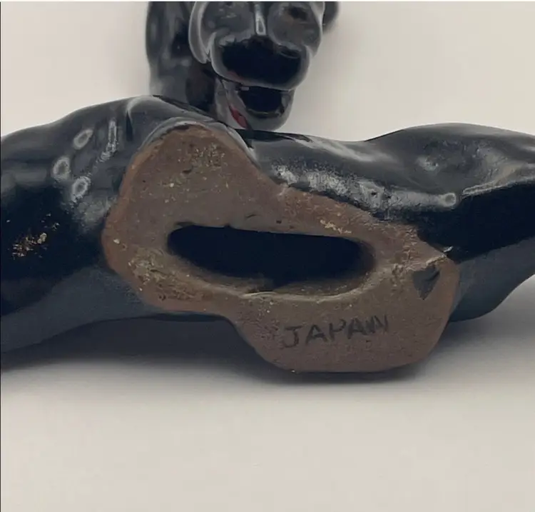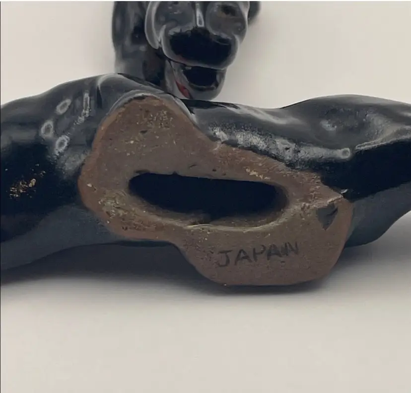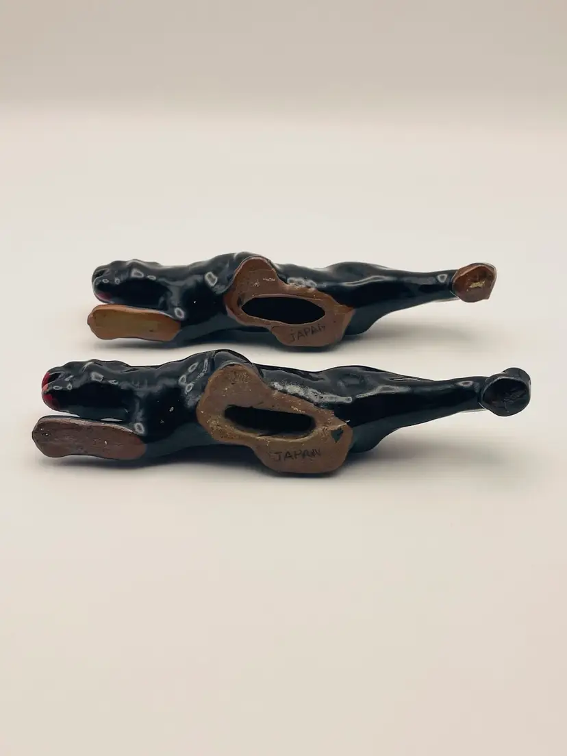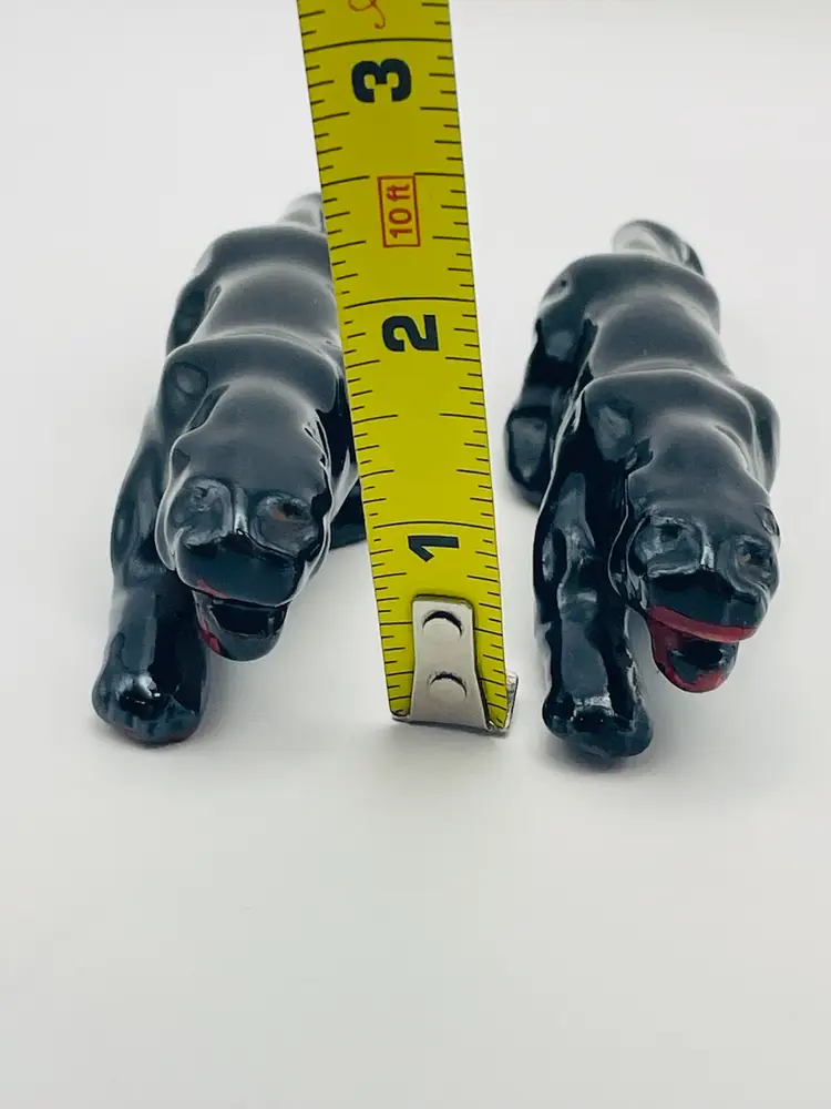 Set of 2, Vintage, Ceramic/Redware, Black Panther, 5" Figurines, MCM, Japan (Small repair on ear of one panther, as shown)