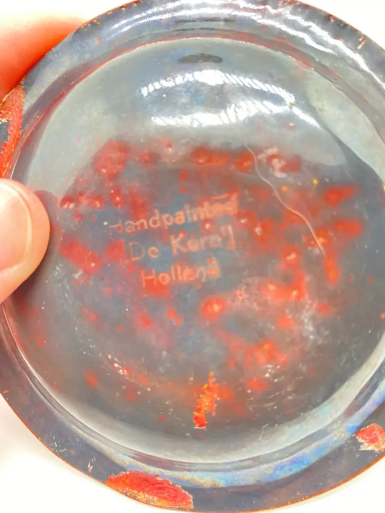 Marked on bottom painted- kern de holland. Some chipping on edges and bent edges. See pics. About 3.5”