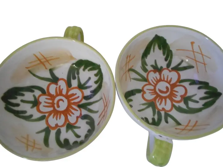Vintage Italy Handpainted Floral Handle Mug Bowls Soup Coffee Cereal – Estate Find