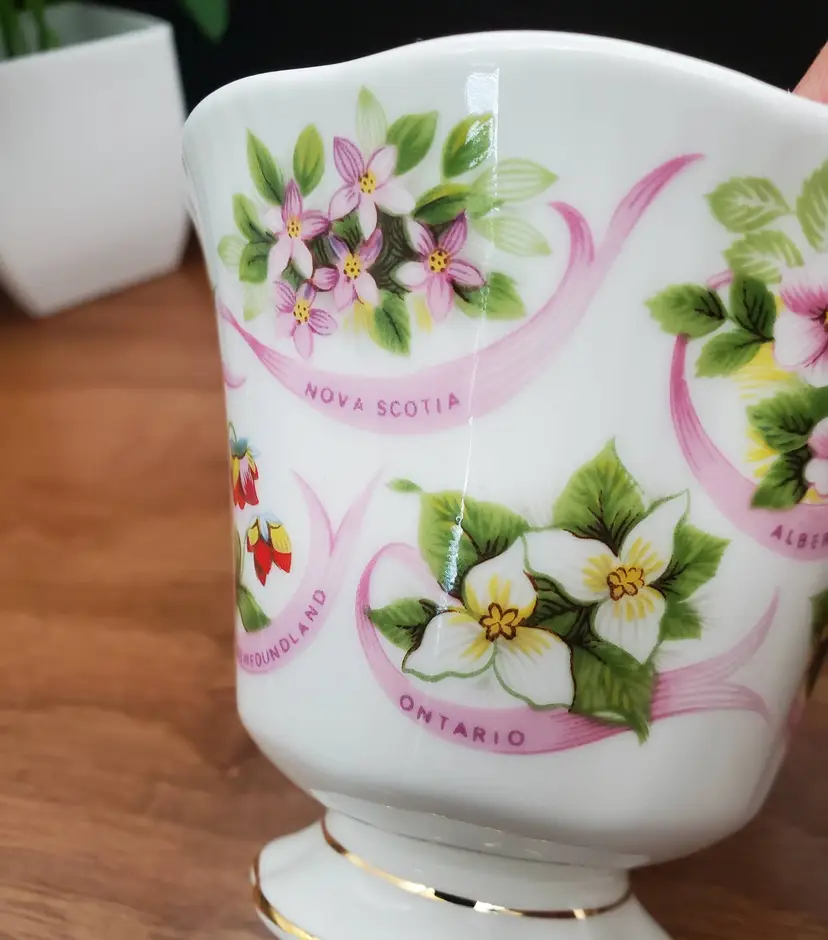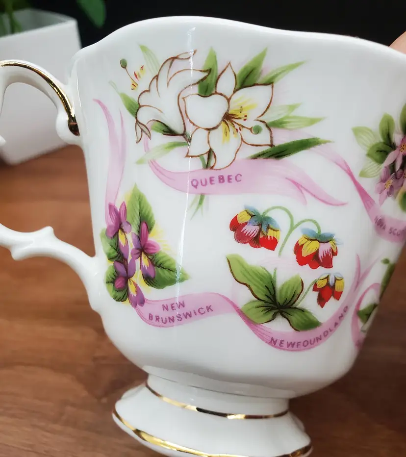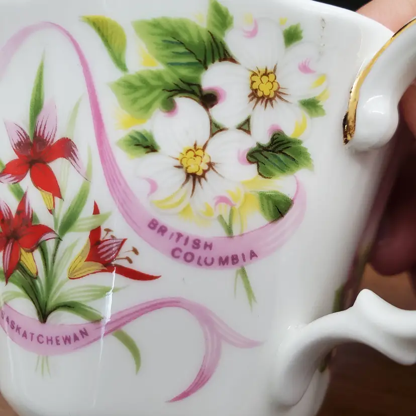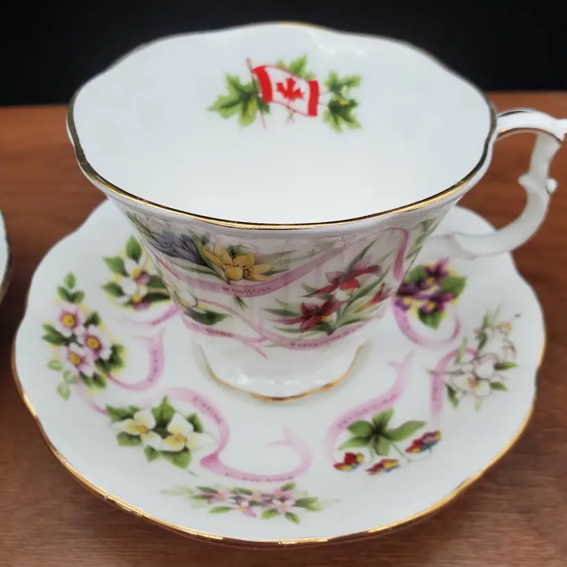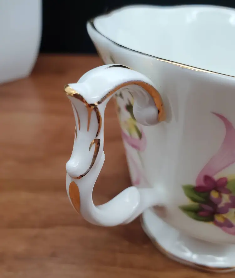 -Gently used condition with no chips or cracks. No crazing. -4 piece set includes two teacups and two saucers. -Holds about 4 ounces.