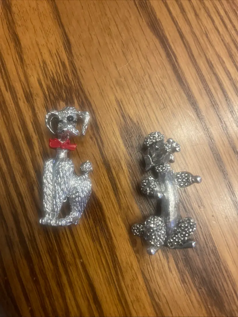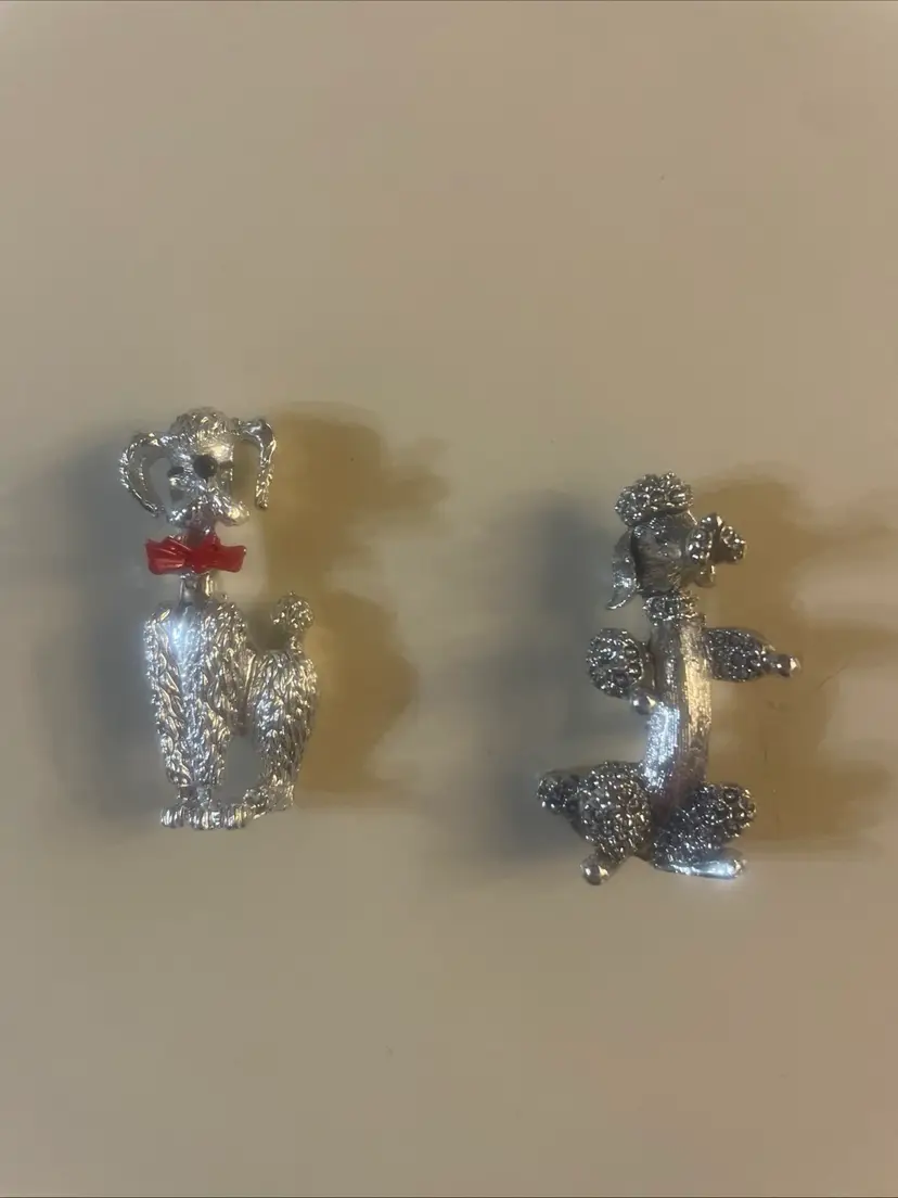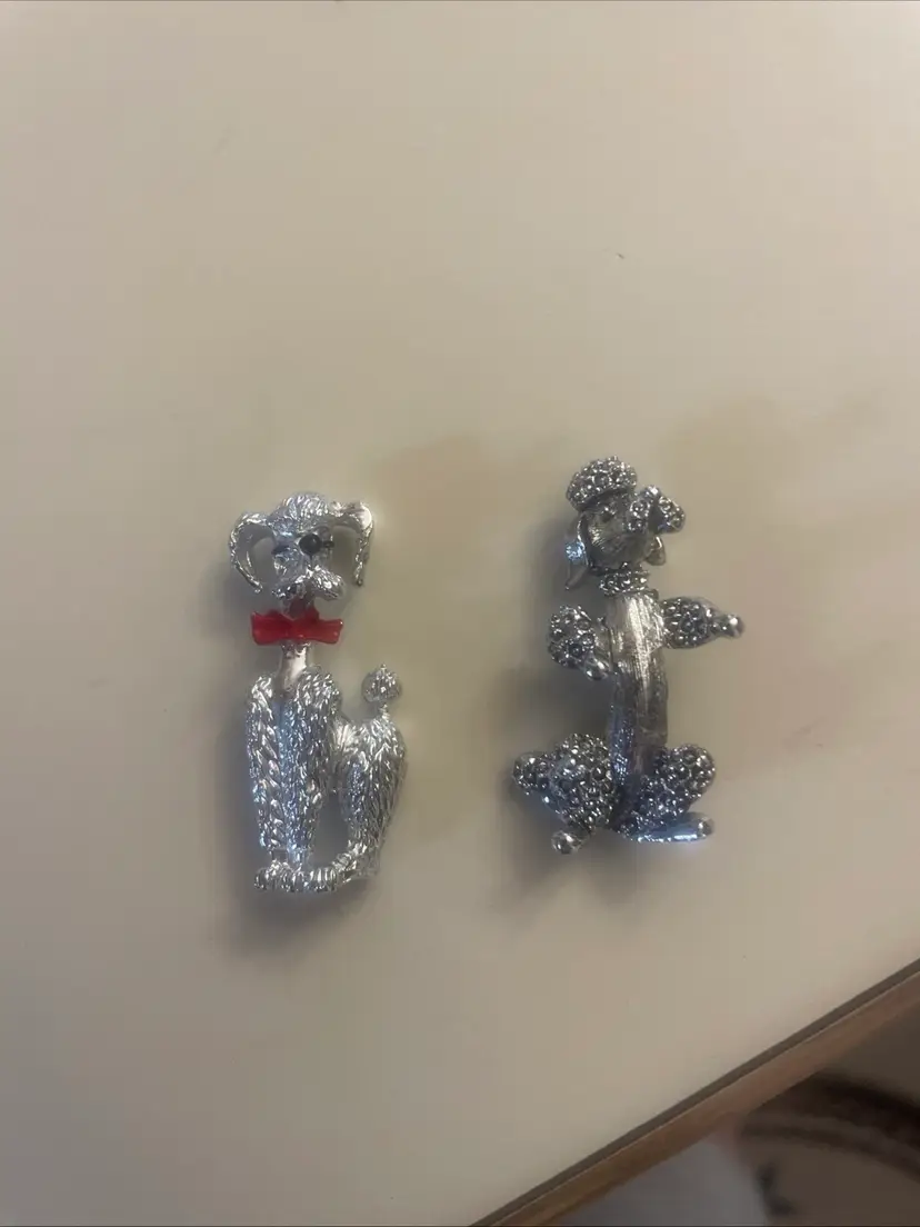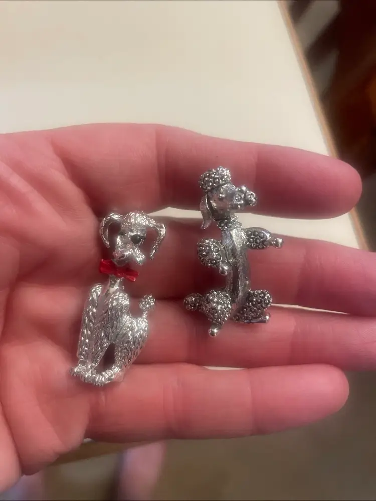 Set of 2 Vintage Signed GERRYS Silver Tone Metal POODLE Dog Pin Brooch Lot