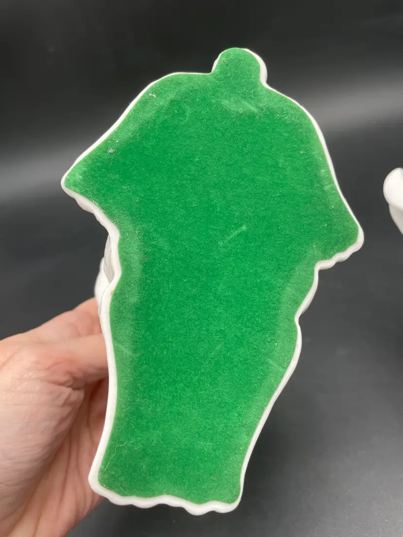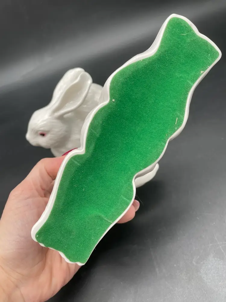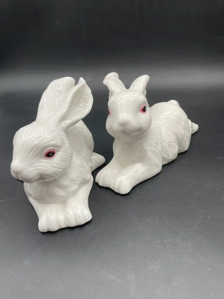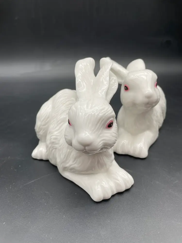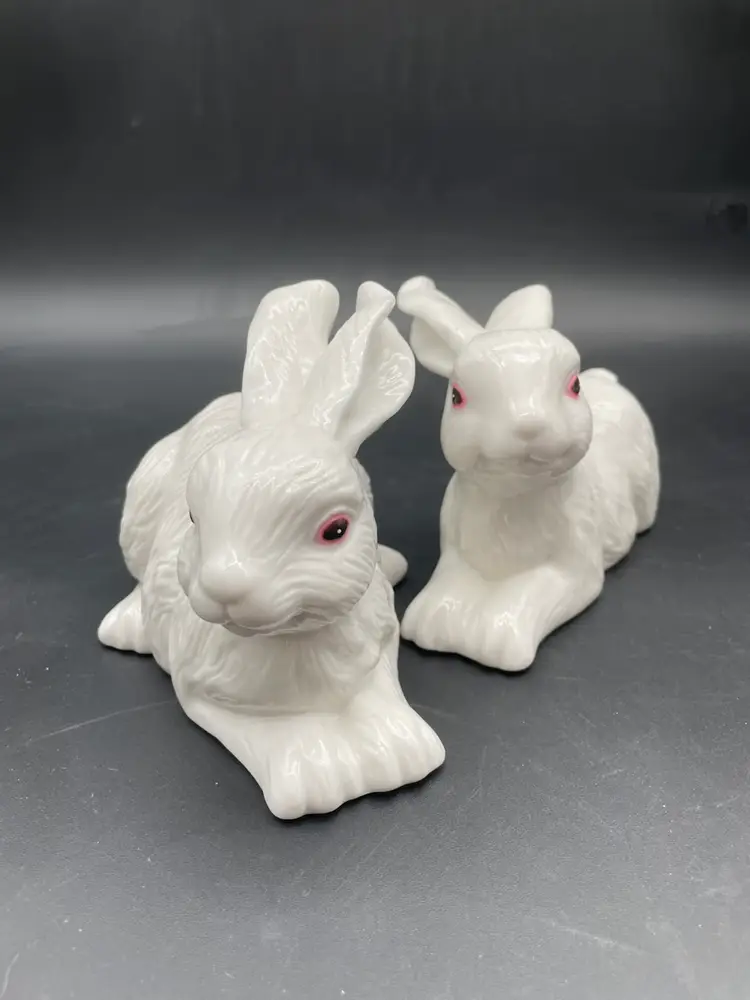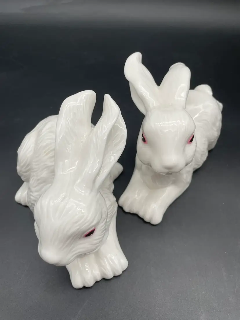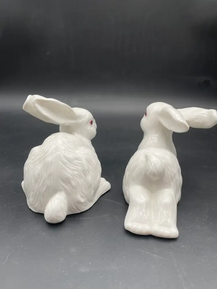 Both in excellent condition. No chips or cracks. The bottoms are felted. Both rabbits measure approximately 7" long.