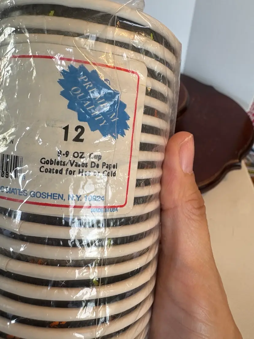 Coated for hot or cold use, made in USA, 9 oz cups. Set of 12 sealed NOS, 9 unused out of package