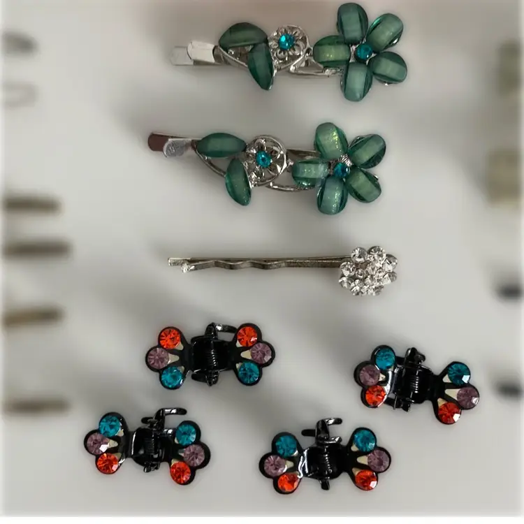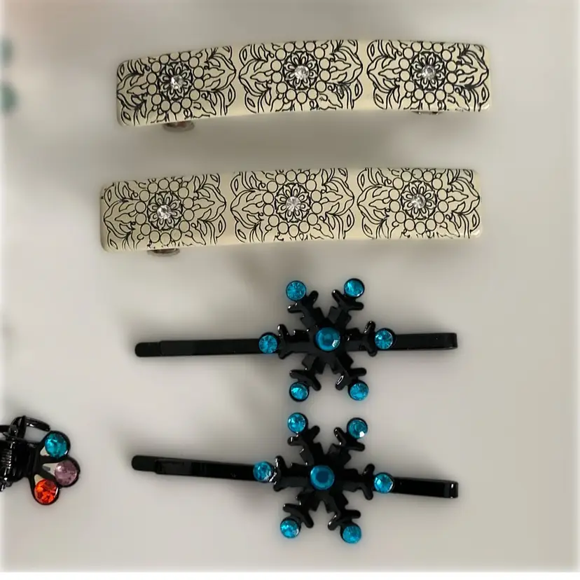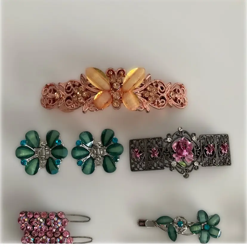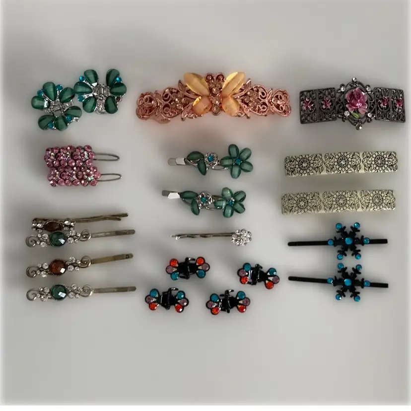 Set of 21 vintage hair accessories. The set includes barrettes and clips with pretty rhinestone details. You will get exactly what you see in the photos.