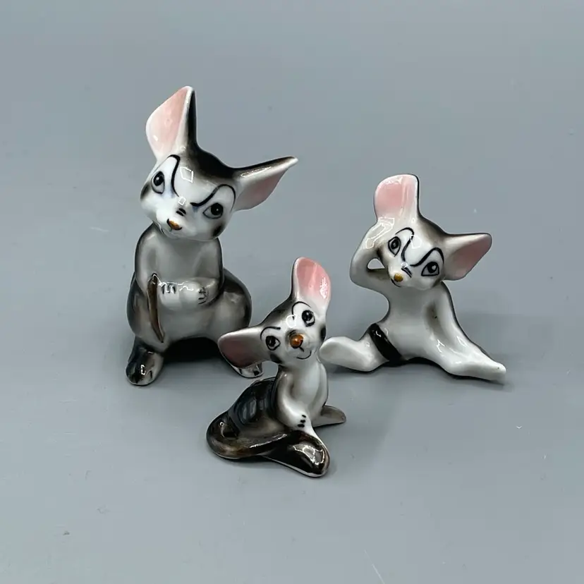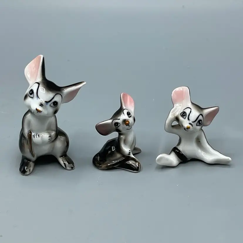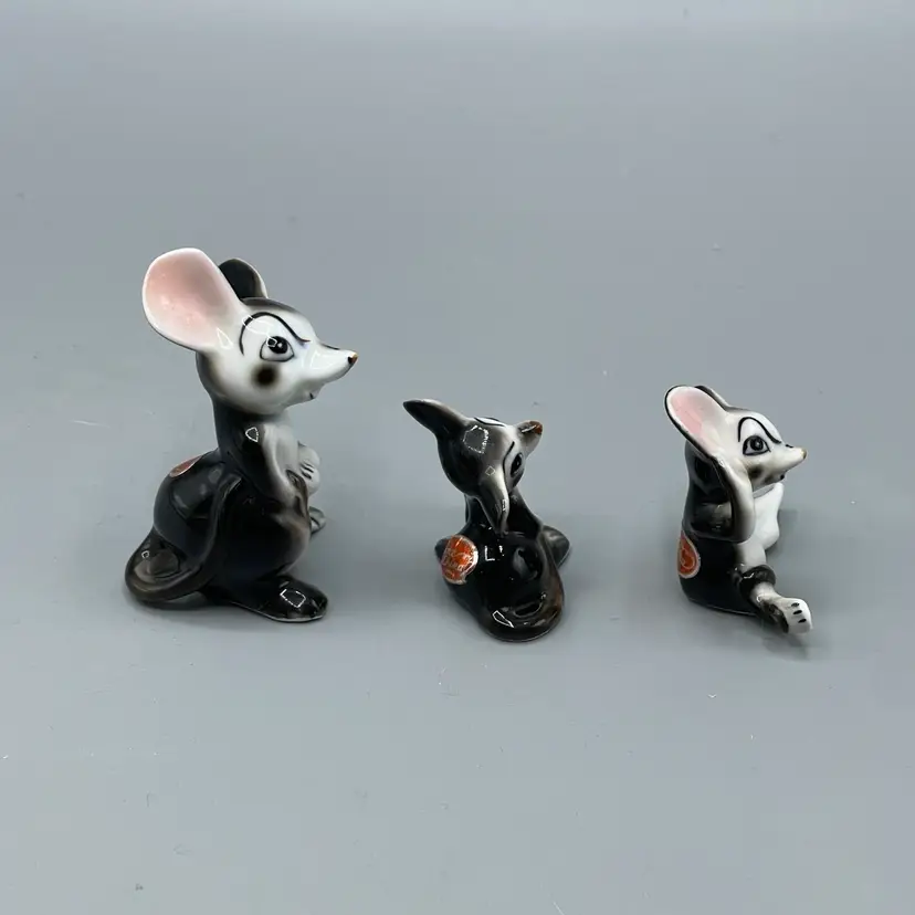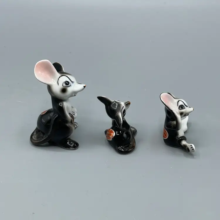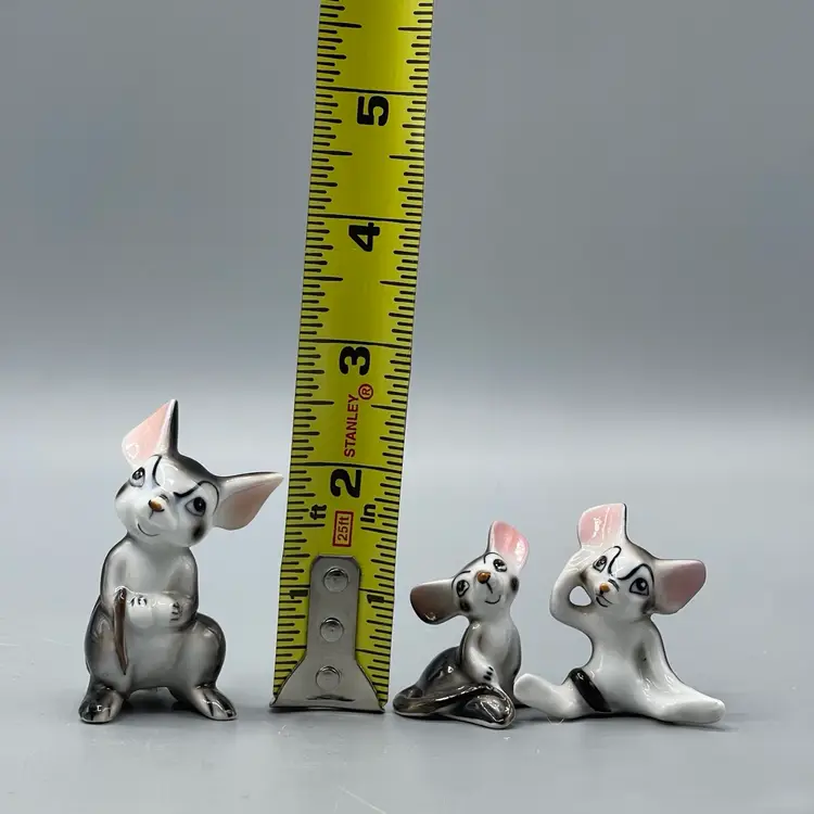 This adorable trio of miniature mice have no chips or cracks. The tallest is about 2-1/2 inches tall.