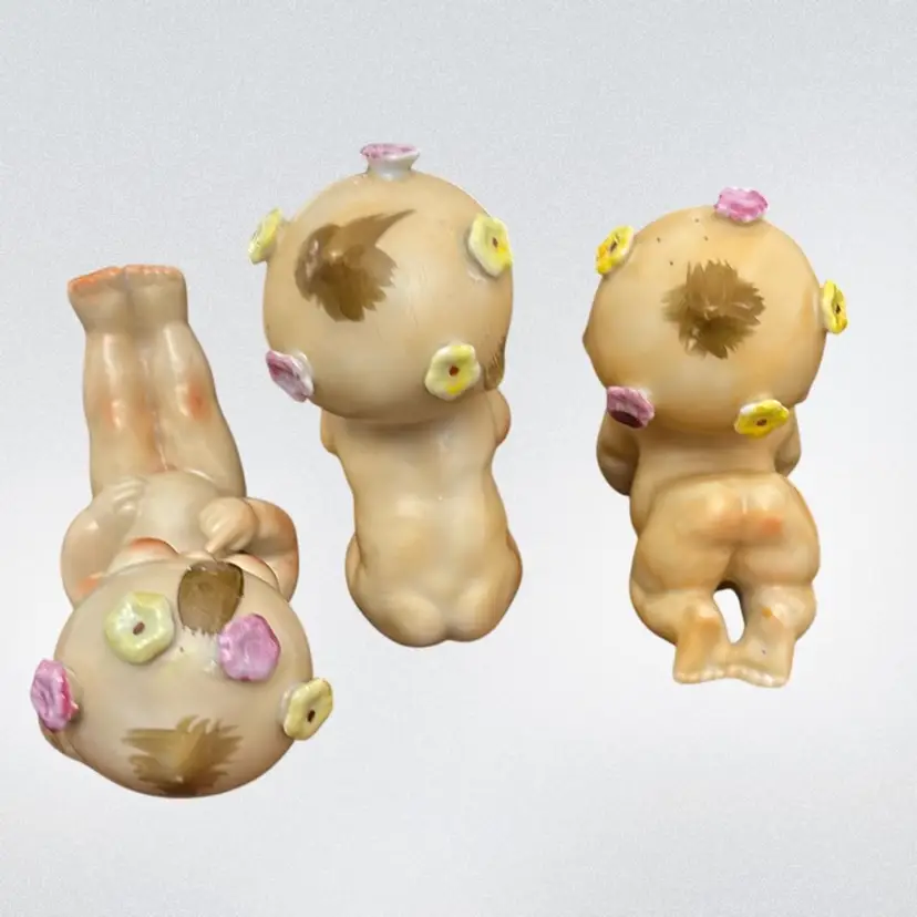 So cute! No chips or cracks! All flowers look intact. Tallest baby is about 3-1/2” tall