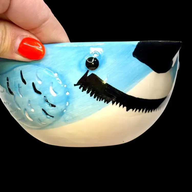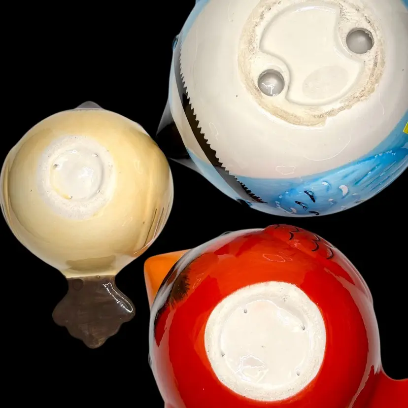 792g for the set Good condition - blue has one glaze chip* Blue Jay, Cardinal, Brown bird (I don’t know what kind he is) Shipping to USA includes tariff and brokerage charges