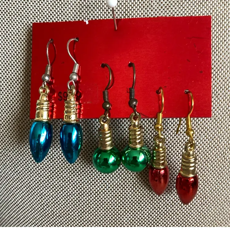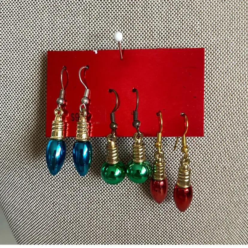 Set of 3 Christmas light bulb earrings in blue, red and green. They measure about 1 1/2” drop. Super fun!