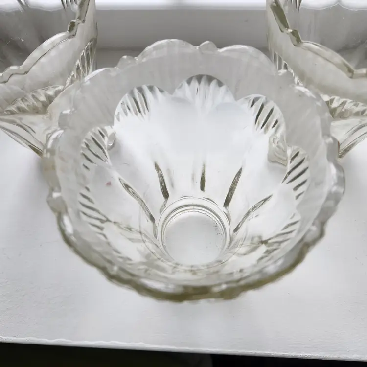 Set of 3 vintage glass shades. These work for fans, pendants, goose neck lamps and vanity lights.