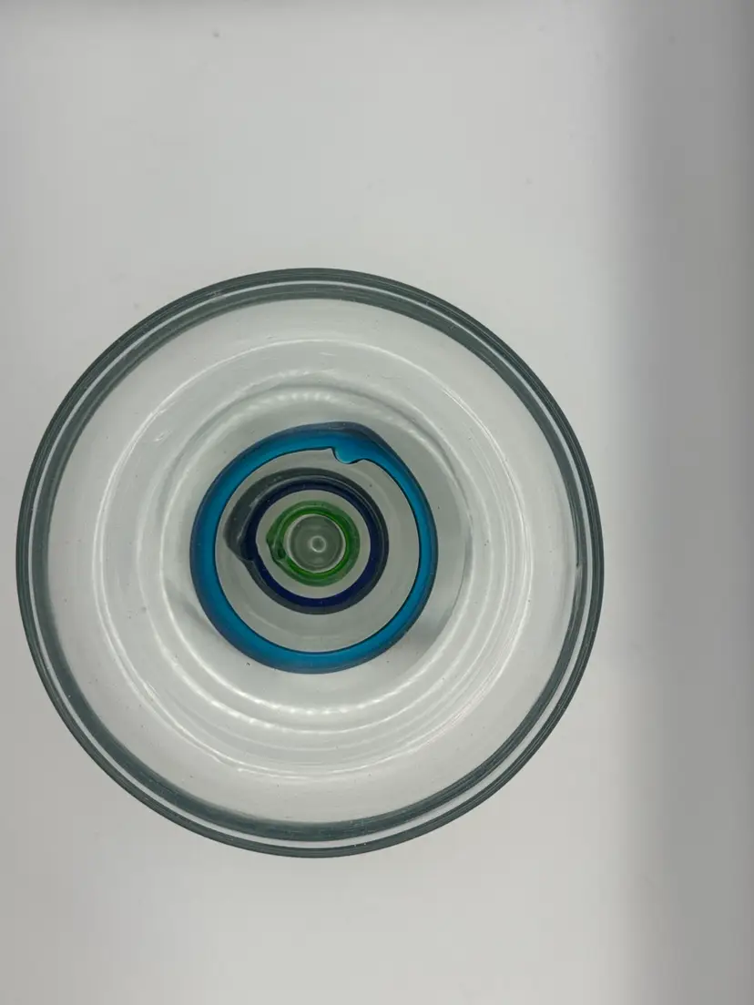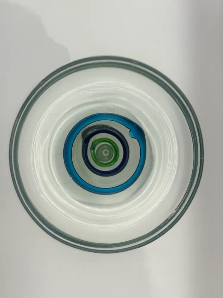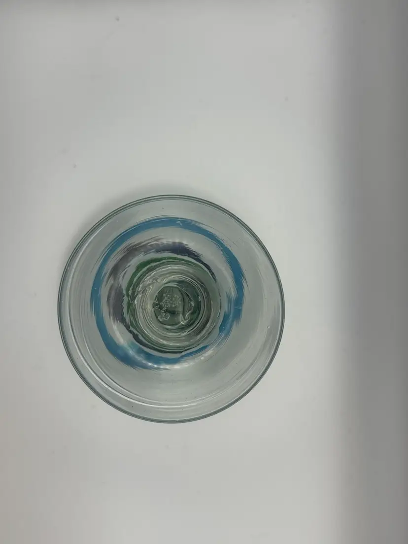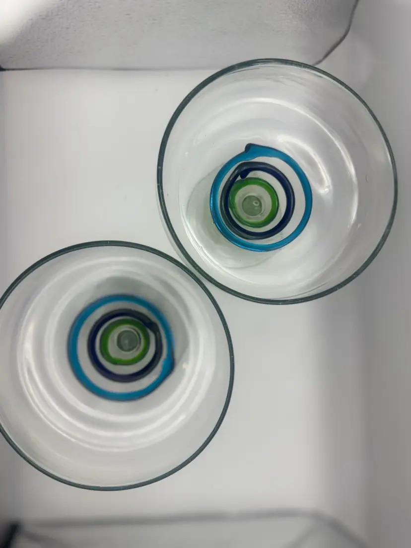 Set Of 3 Large Blown Glass Blue And Teal Swirl Margarita Glasses 7”H; 5” Diameter
