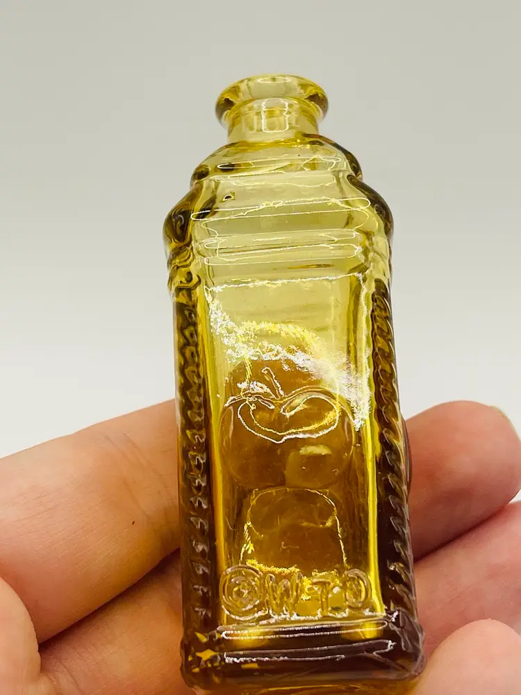 All of these bottles are marked Wheaton on the bottom, and measure approximately 3 inches tall. There are no chips or cracks.
