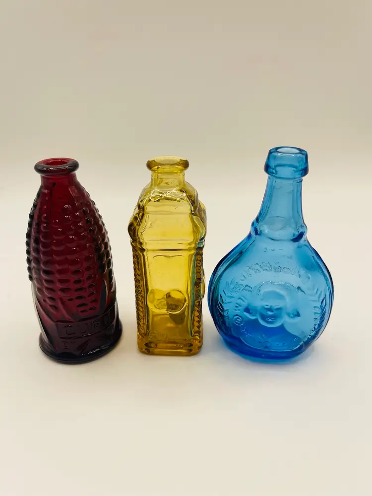 Set of 3 miniature Wheaton bottles.