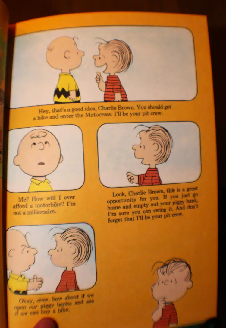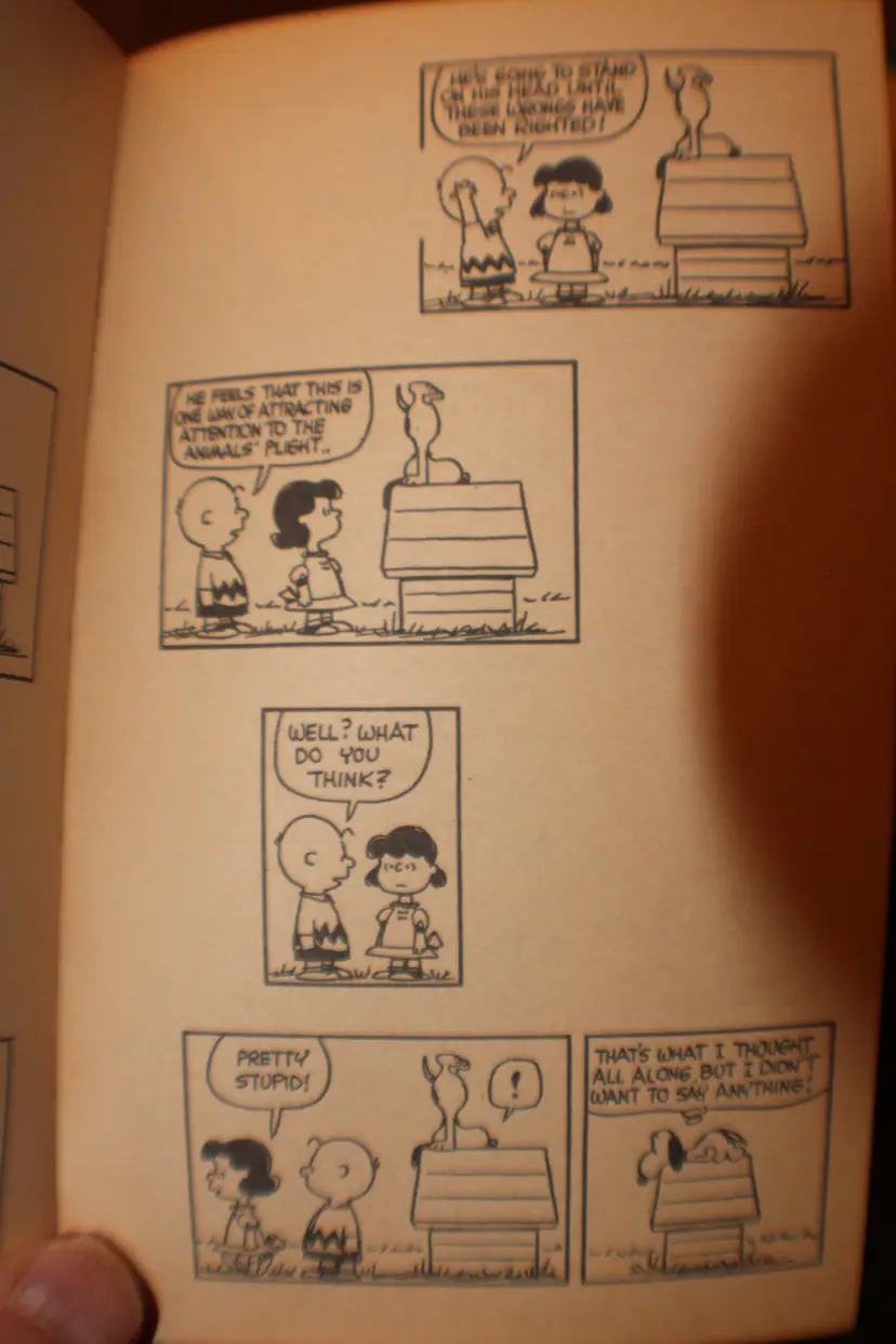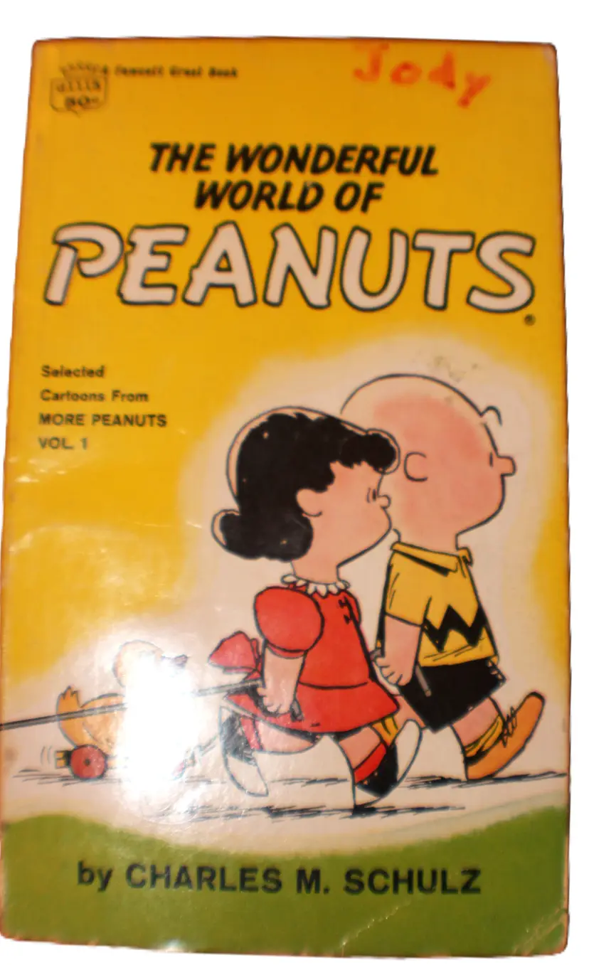 Pages and binders all in good condition, light yellowing of the pages in Peanuts for Everybody. Sequence of photos: cover, inside, rear cover. "Jody" written on cover of "WW of Peanuts" and "T/7/2/70" written in pencil on intro page of "Peanuts for Everybody". All corners nice and flat, no dog ears.