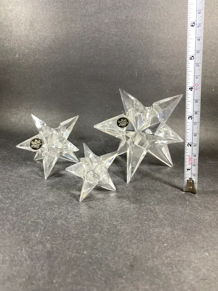 There is a chip on largest one as noted in photos. It measures approx Large: 3-1/2” height x 3-3/4” length Medium: 2-3/8” height x 2-1/2” length Small: 1-5/8” height x 1-3/4” length