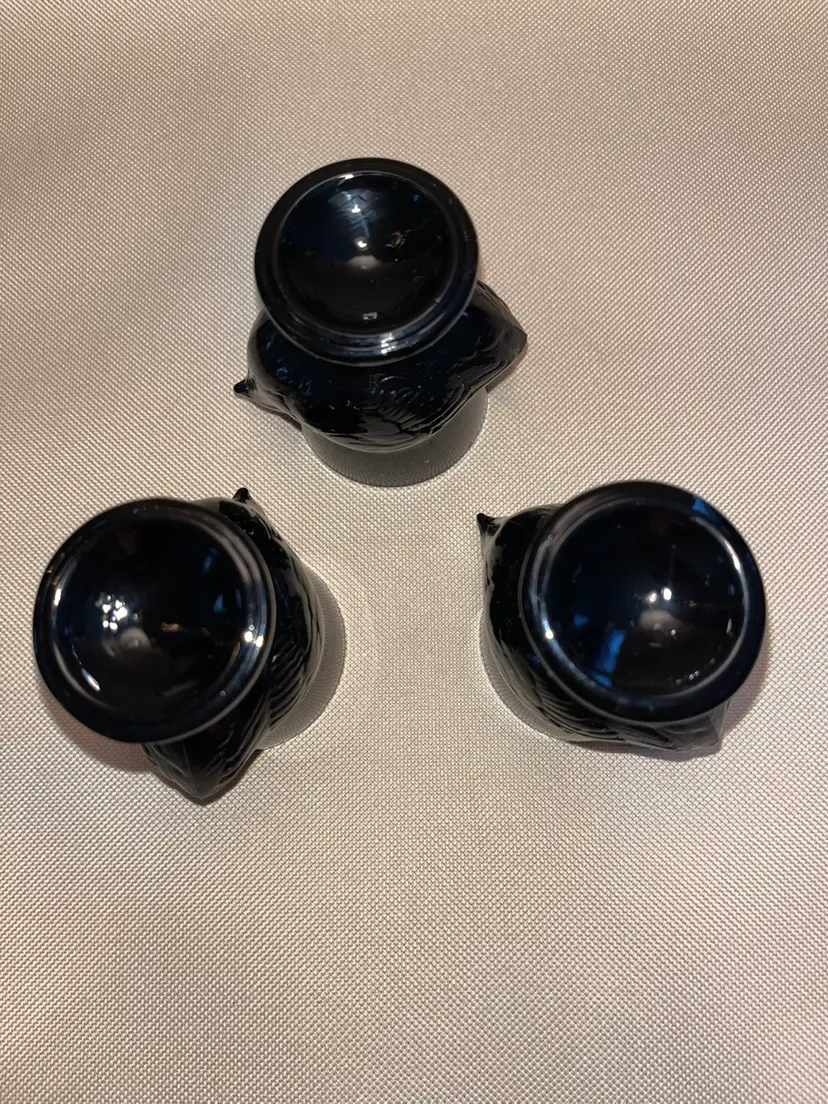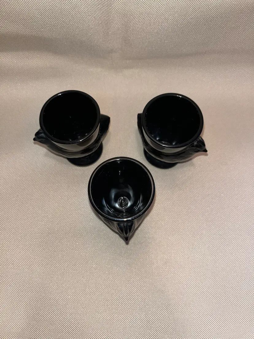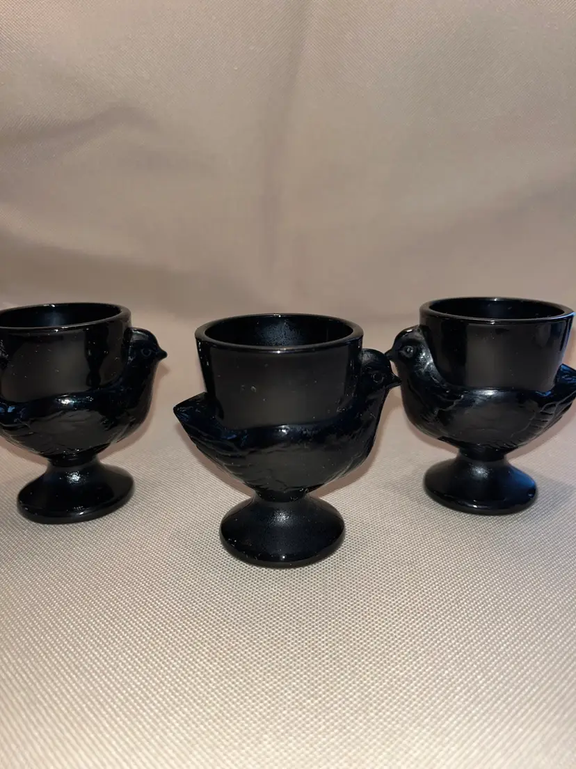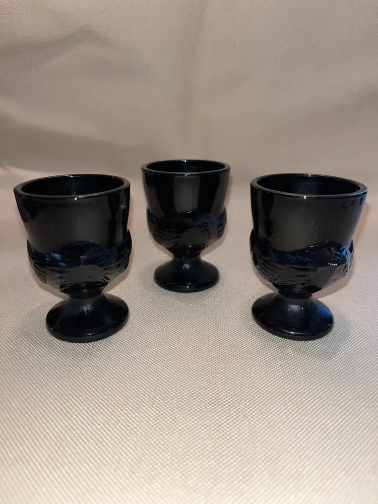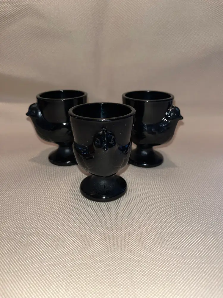 Set of 3 vintage Arocoroc France black amethyst glass chicken egg cups. In excellent condition no chips or cracks