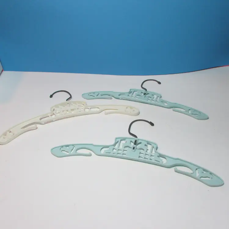 These lovely hangers have some wear, but still a nice set to use and display. Each hanger is about 10" long. This is shipped from a smoke free home. Thanks for looking!