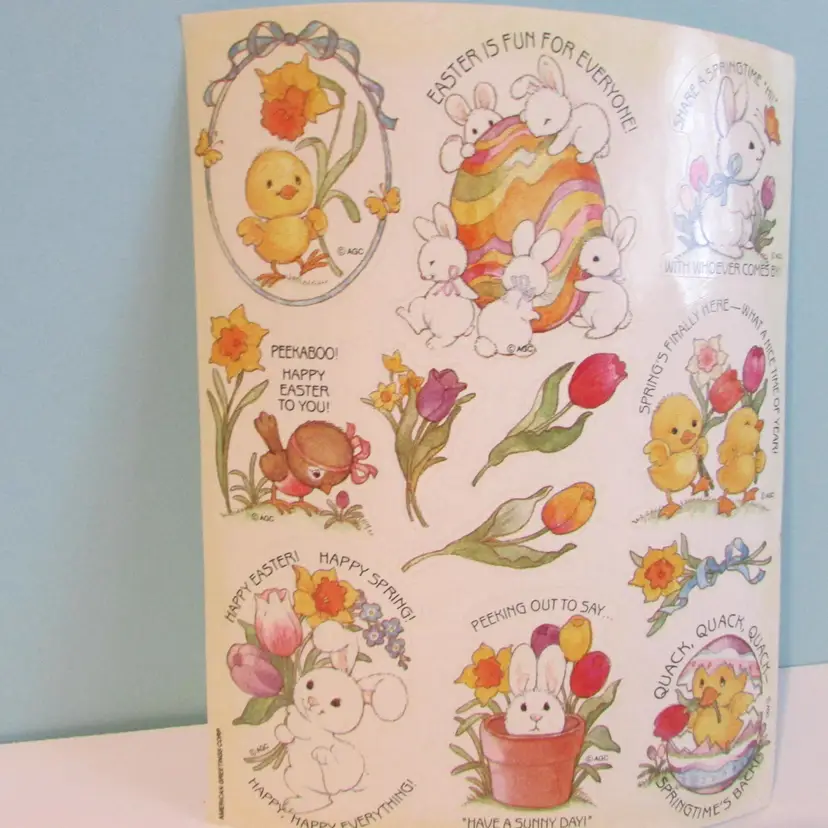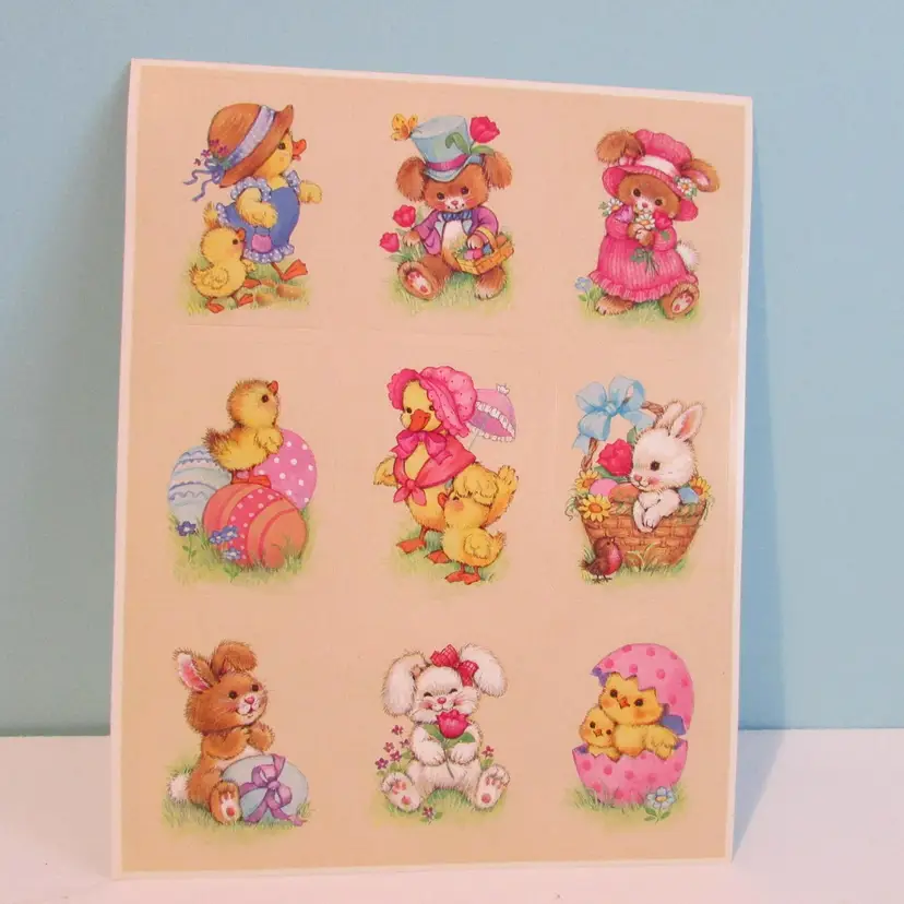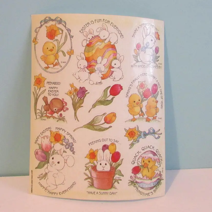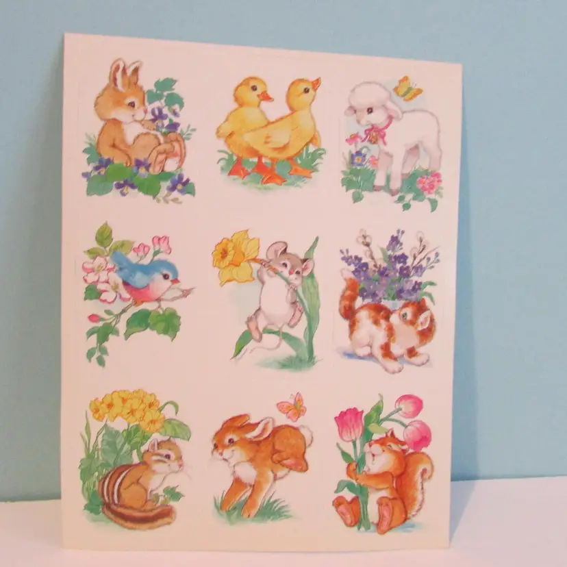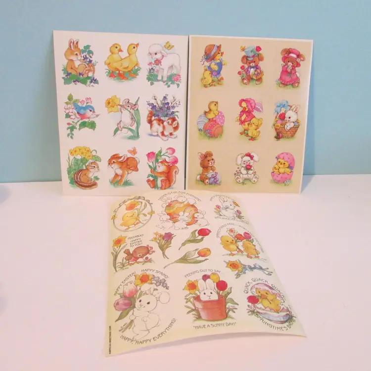 This is a fun set of 3 vintage sticker sheets, the one has some discoloration around the sides. It does show on the stickers, but still cute to use and display. This is shipped from a smoke free home. Thanks for looking!