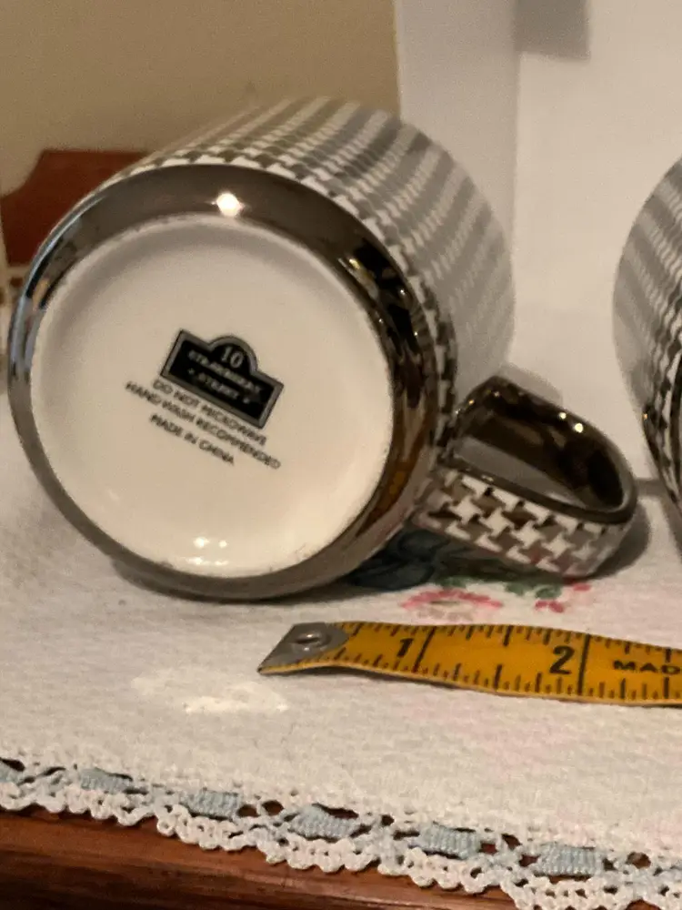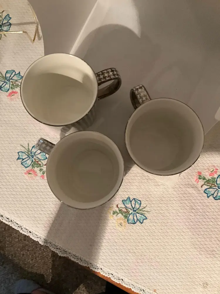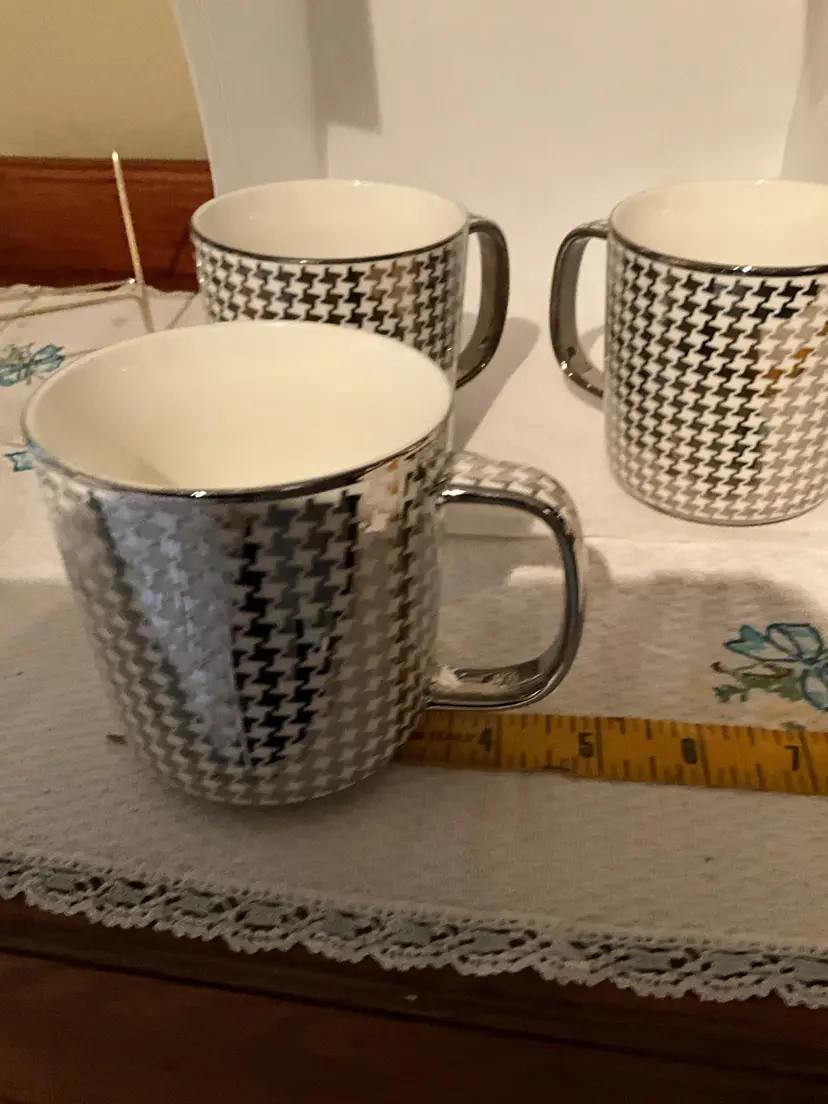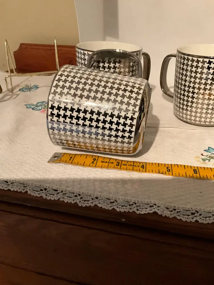 This set of three vintage mugs features a striking black and white houndstooth pattern. Perfect for adding a touch of classic style to your morning coffee or tea. Excellent condition. Please refer to the pictures for details.