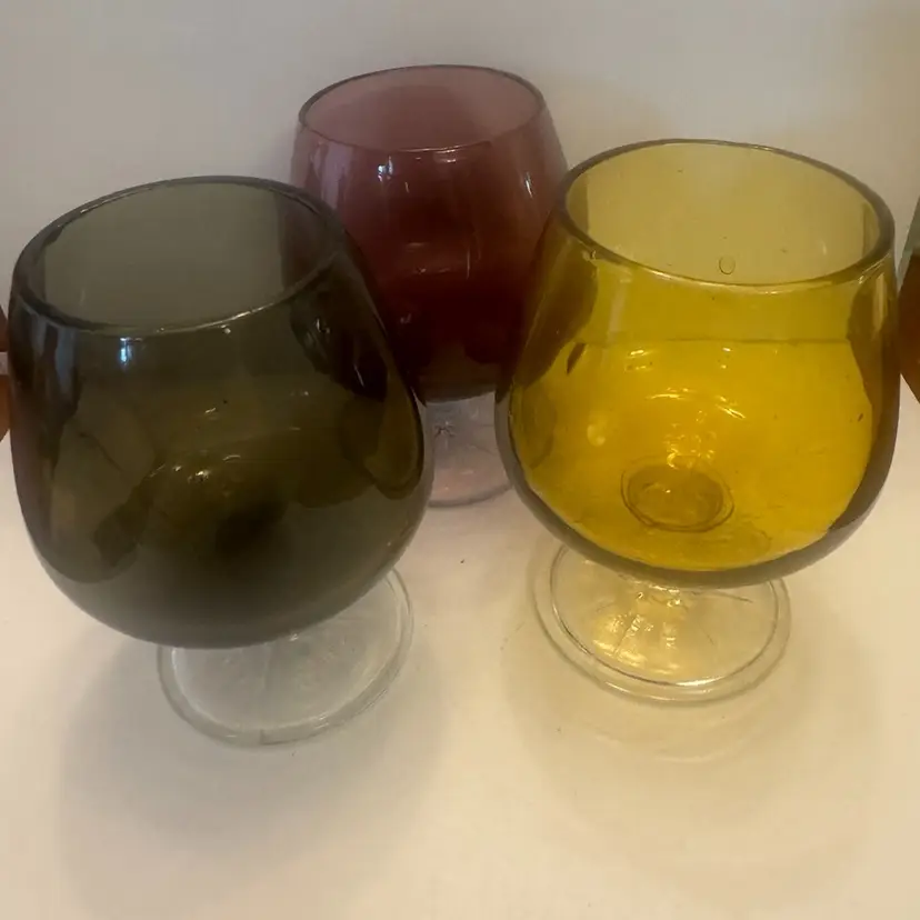 One green, one yellow and one pinkish red purple. Beautiful condition no chips or cracks. Measures 3” X 3”