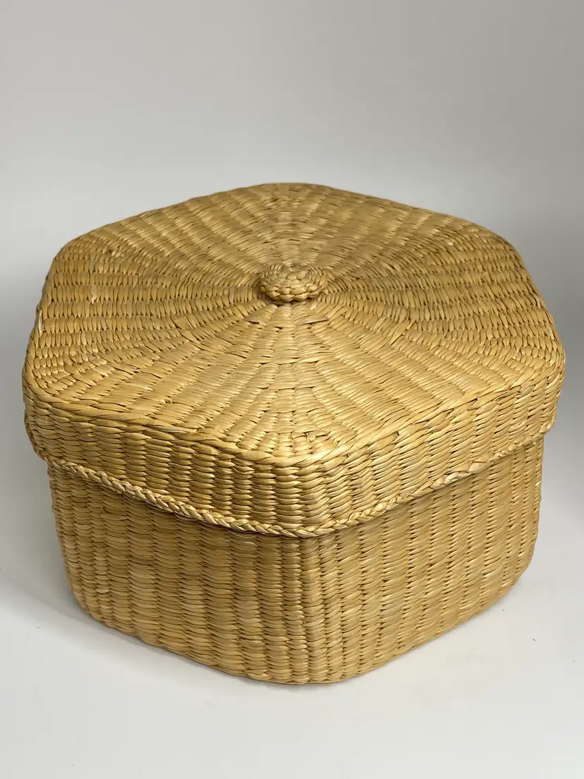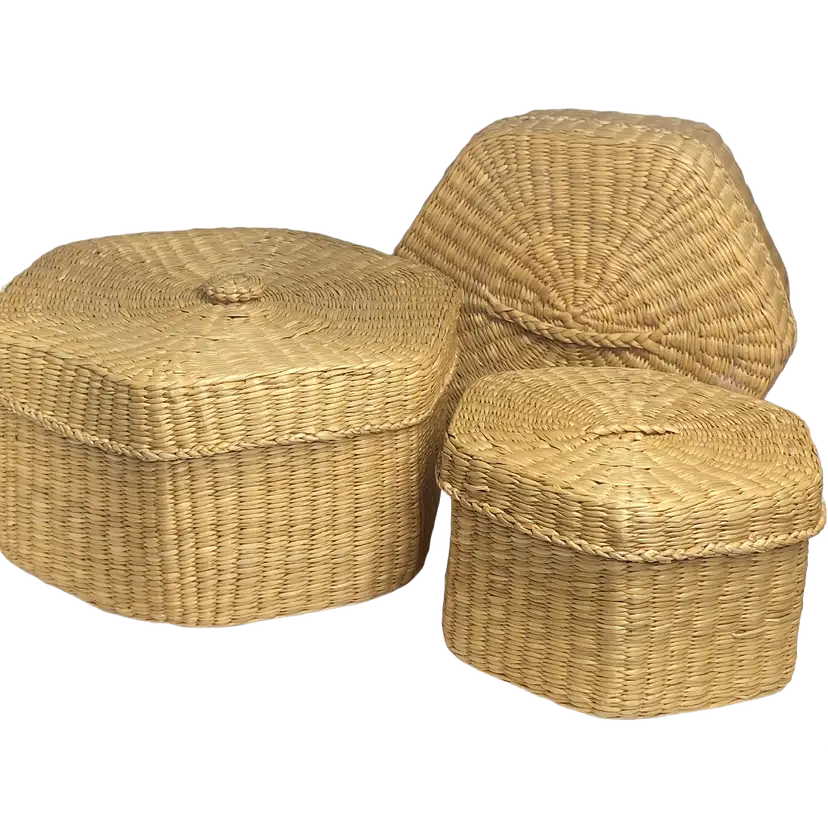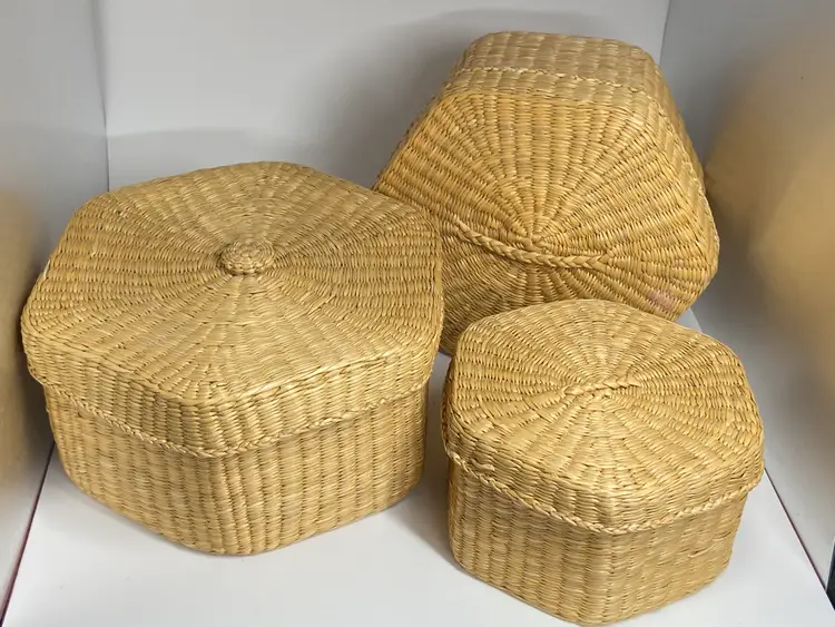 Set of 3 Woven Lidded Sweet Grass Baskets, 1960's, 6" Diameter