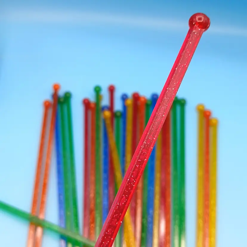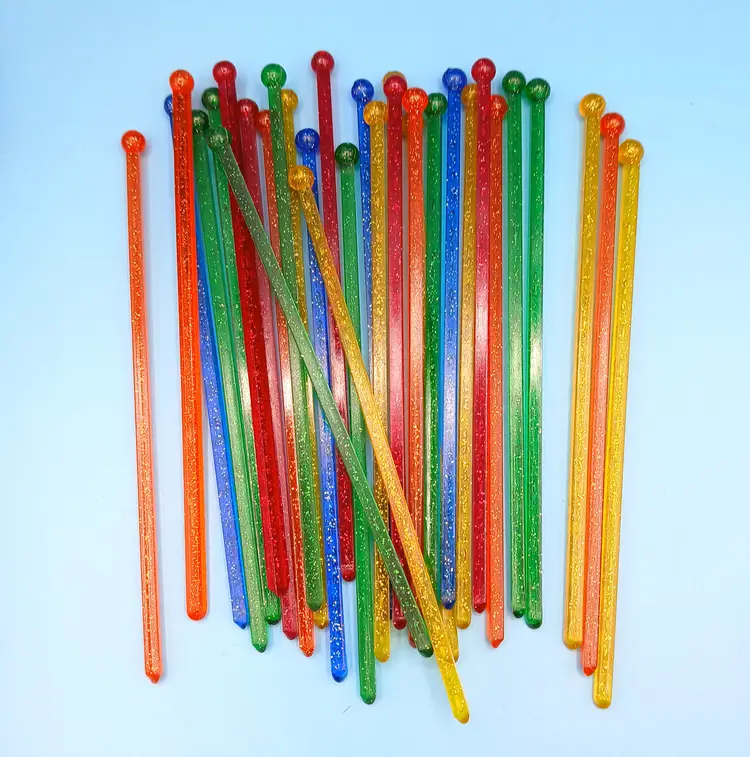 Groovy retro plastic swizzle sticks, plus a handful of vintage plastic sandwich spears. Stirrers measure about 6", are made of hard plastic with glitter inside. All are in tact. Thanks for looking!