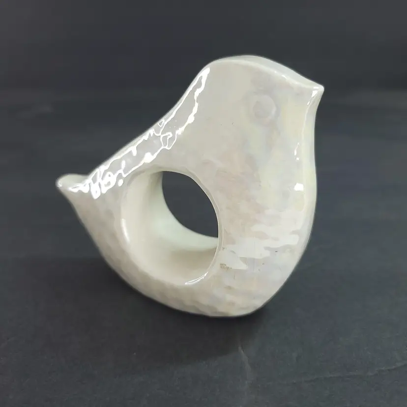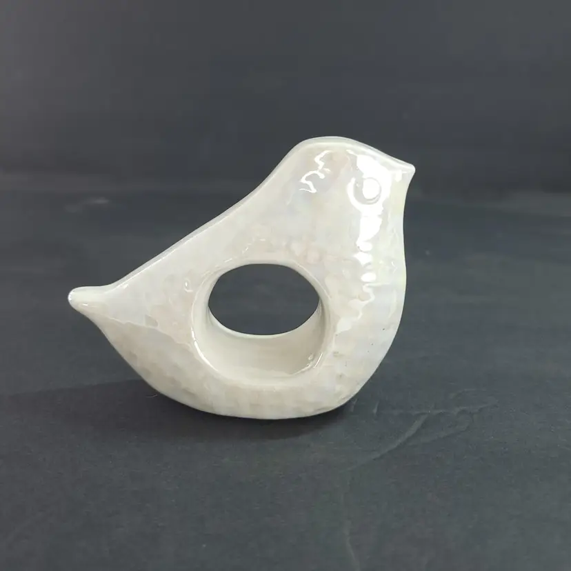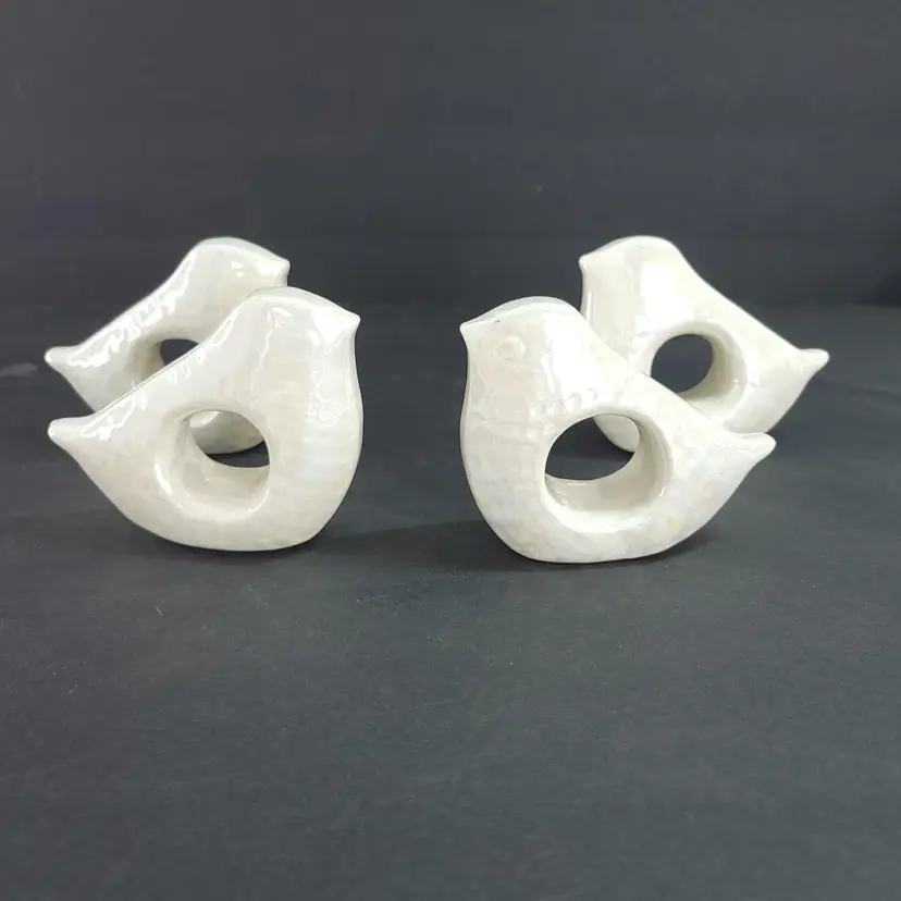 Set of 4 ceramic turtle dove napkin ring holders Very good pre-owned condition White with slight iridescence Measures 3" tall x 3.5" long No chips or cracks noted
