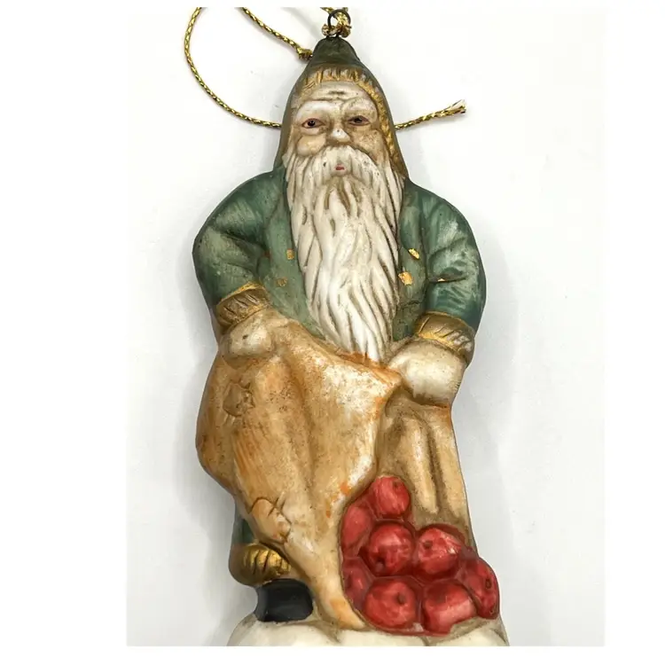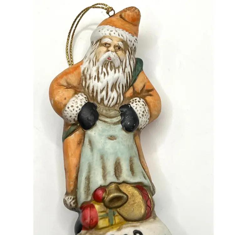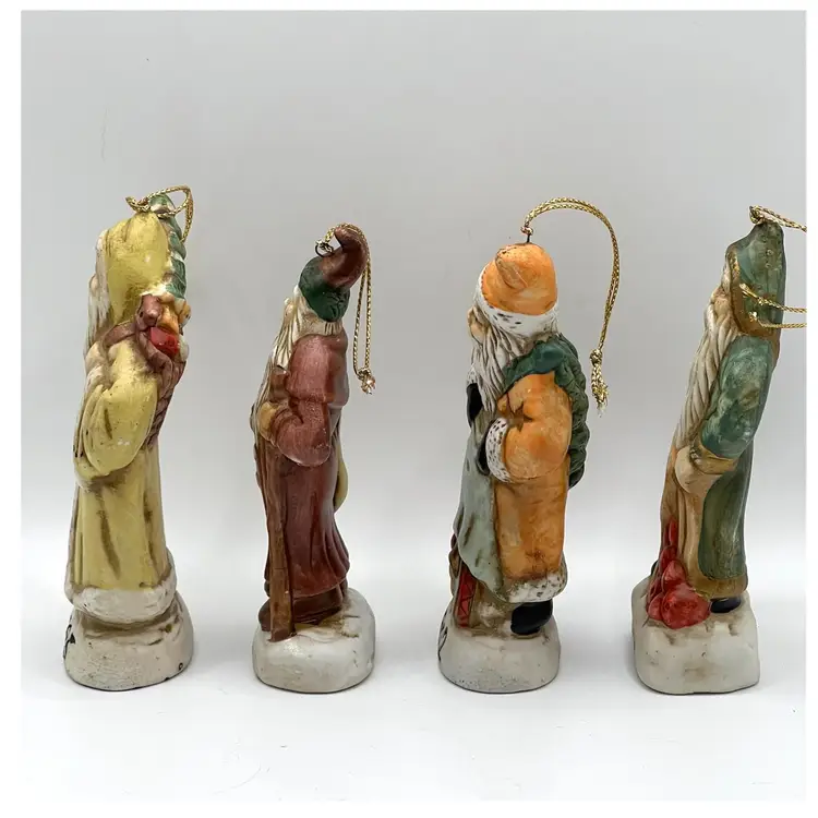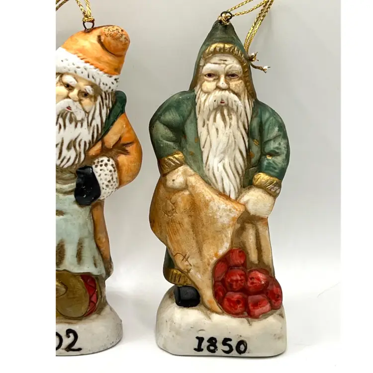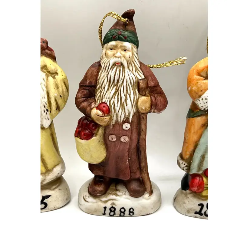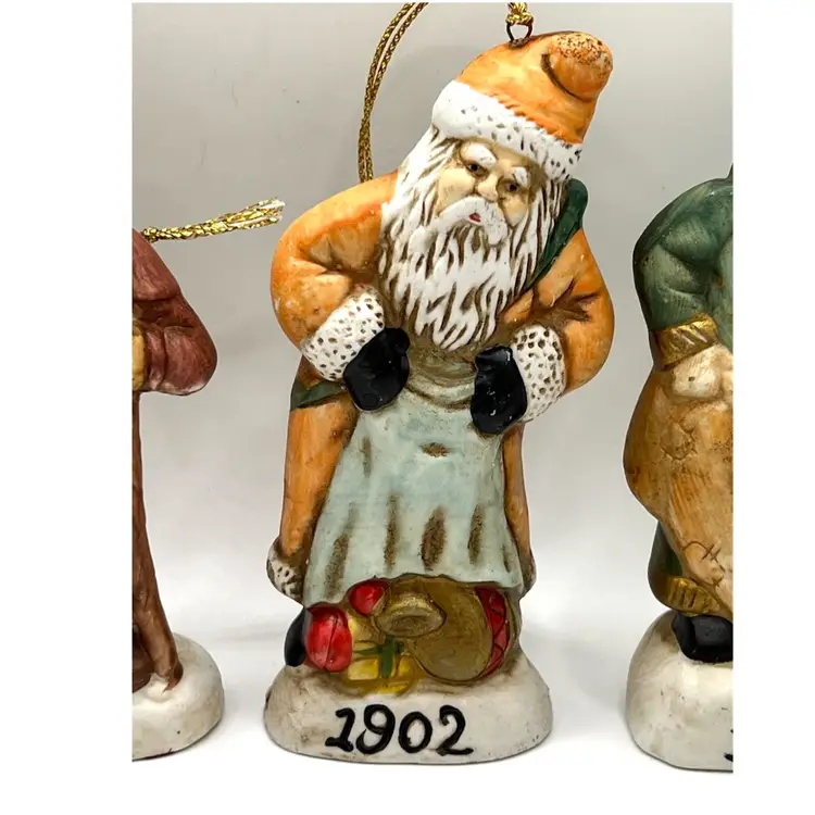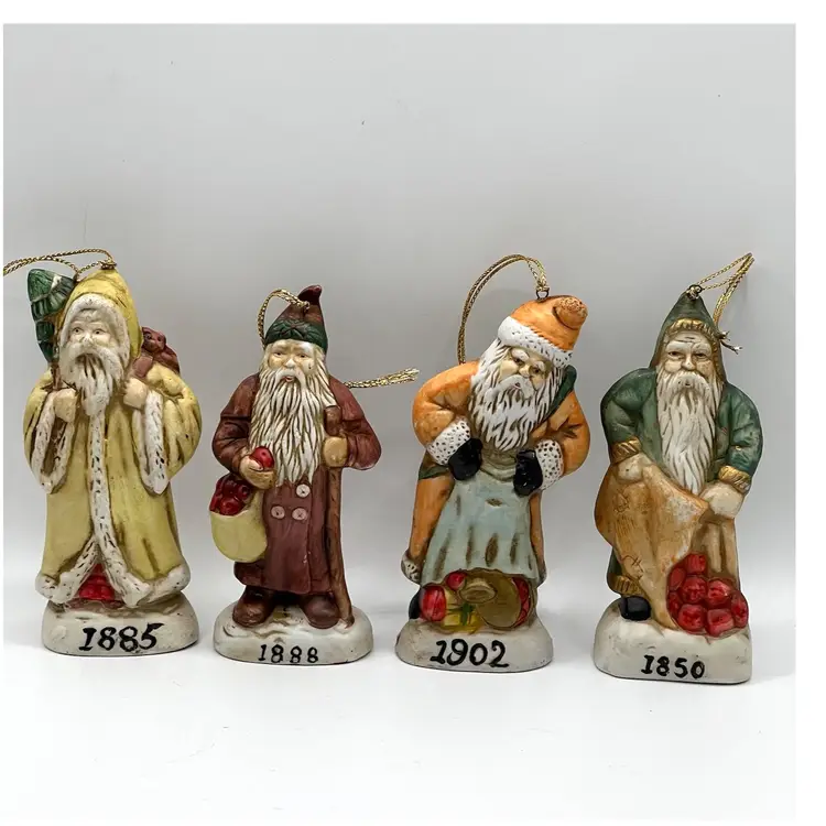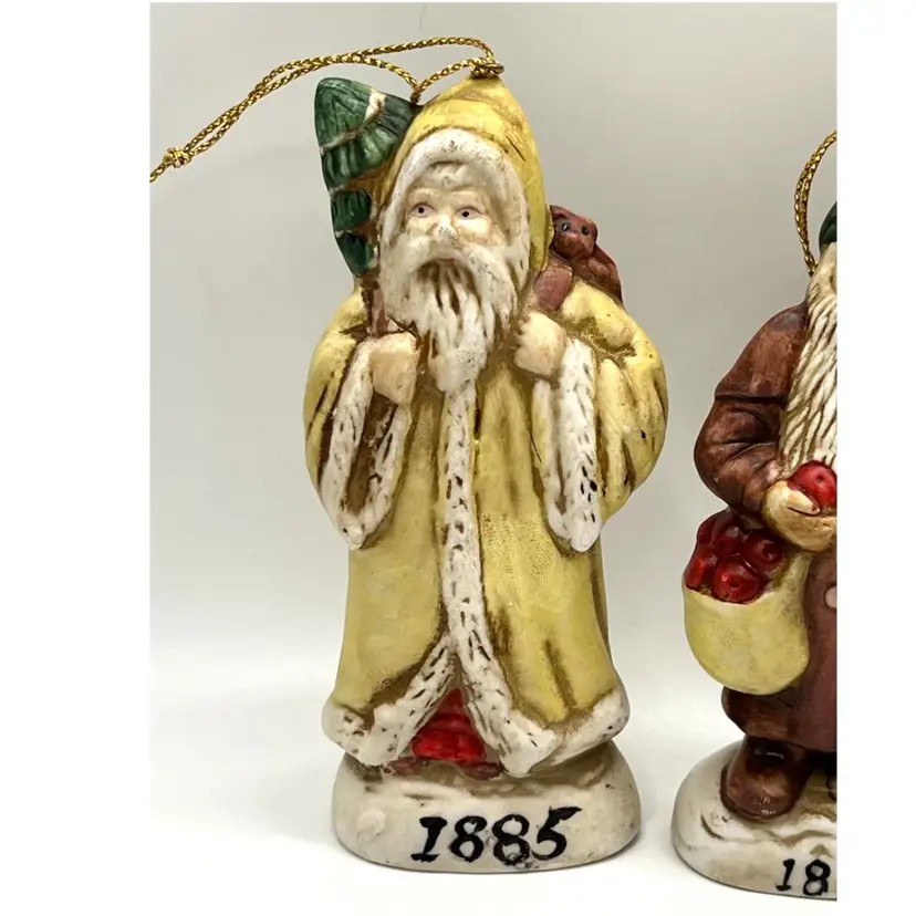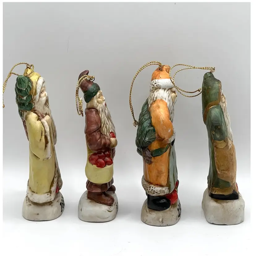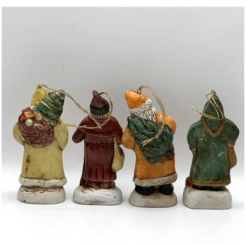Set Of 4 Memories Of Santa Claus Christmas Tree Ceramic Ornaments 4.5 in Height, 2 in Length. No chips