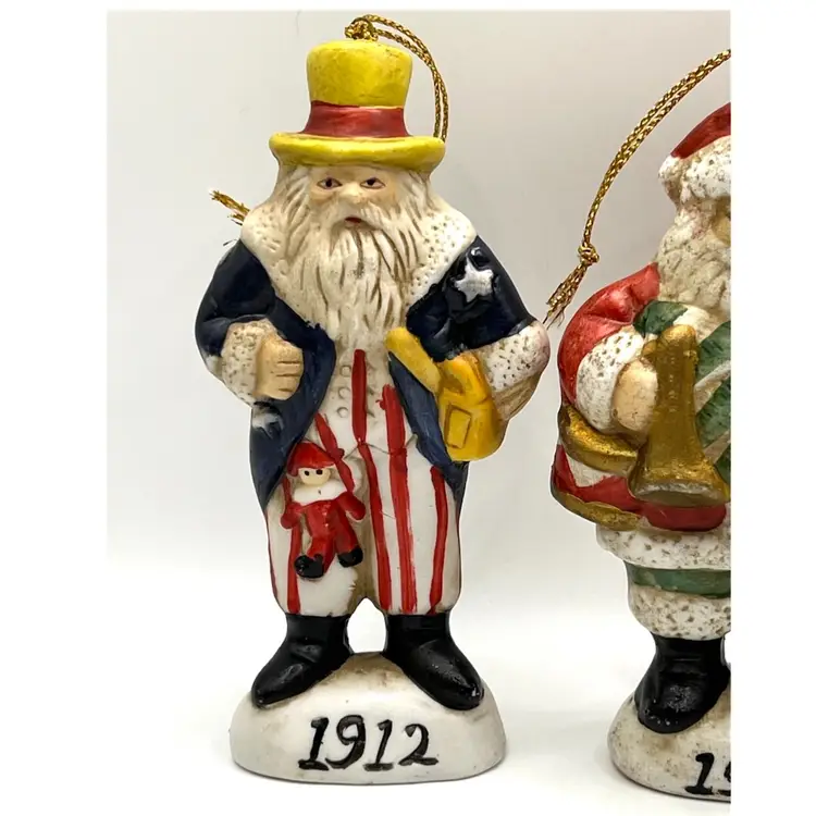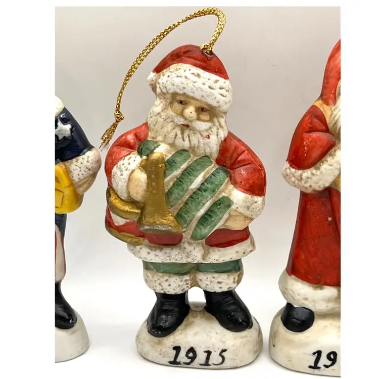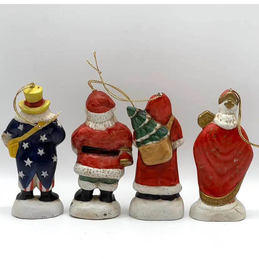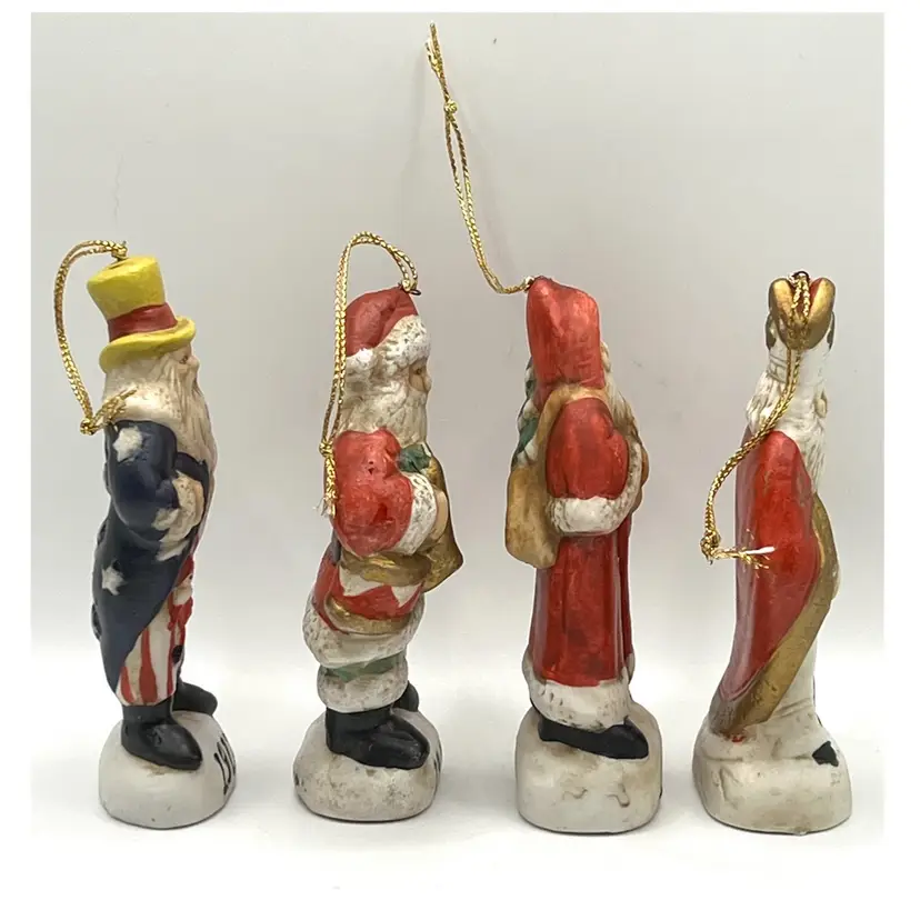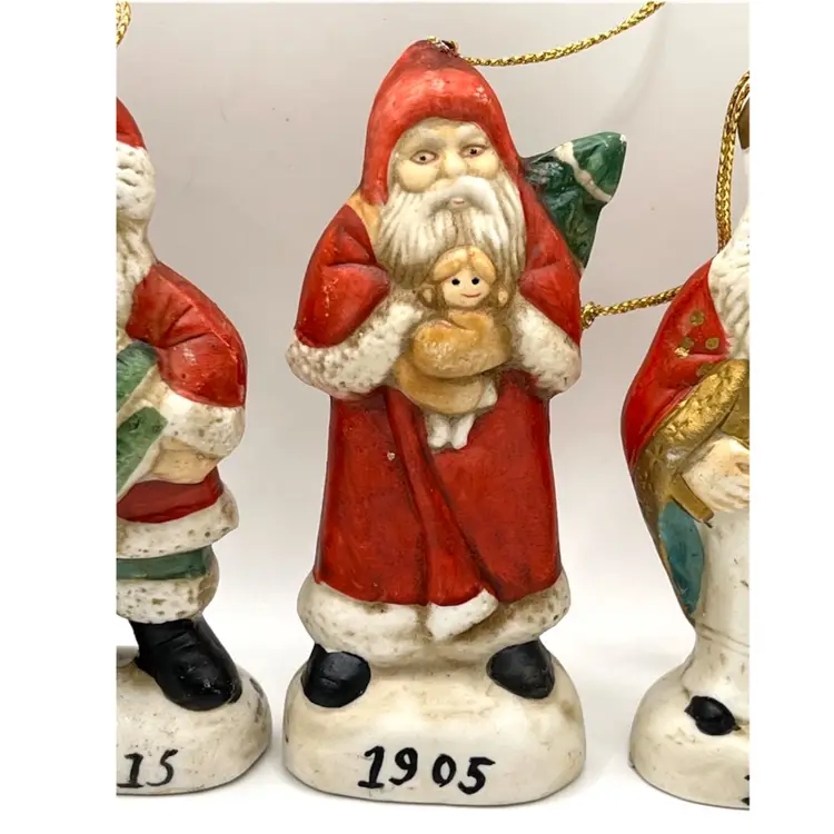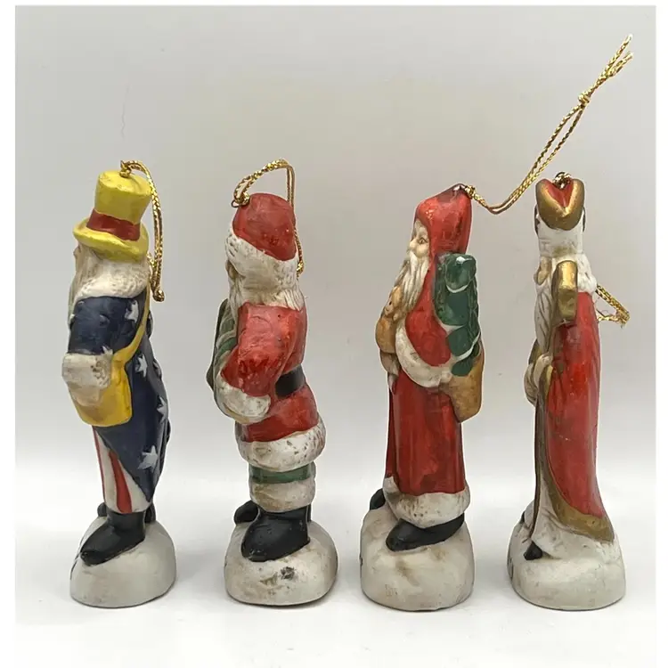 Set Of 4 Memories Of Santa Claus Christmas Tree Ceramic Ornaments 4.5 in Height, 2 in Length. No chips.