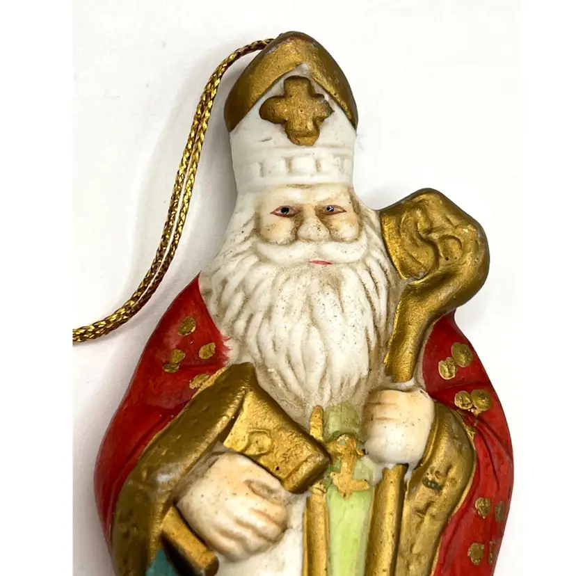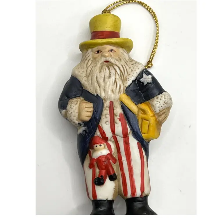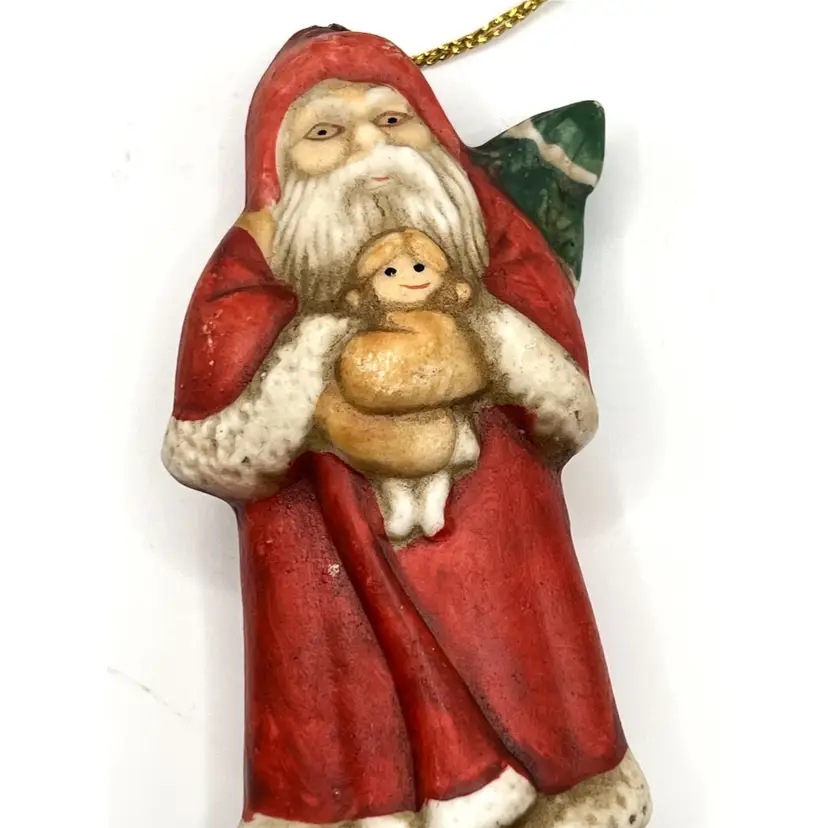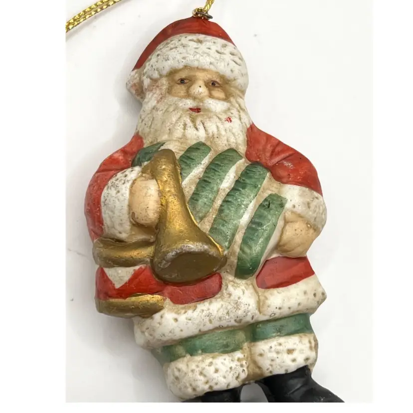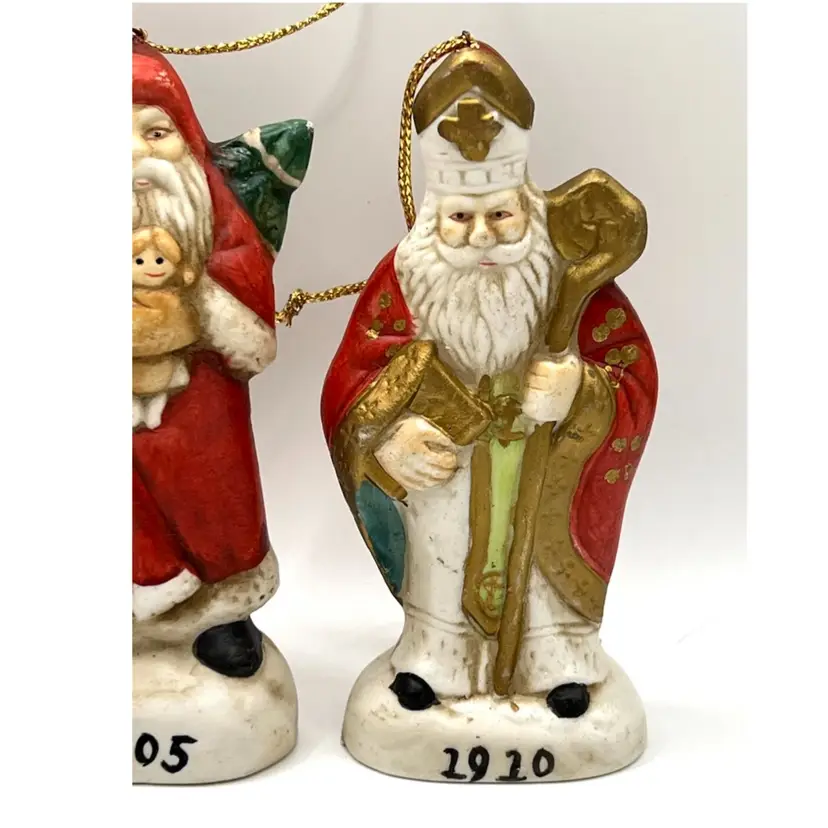 Set Of 4 Memories Of Santa Claus Christmas Tree Ceramic Ornaments 4.5 in Height, 2 in Length. No chips.