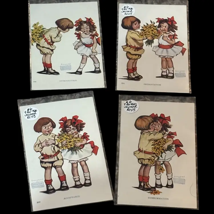 Set of 4 Katherine Gassaway postcards. Copyright 1906, in good condition, unused 3.5x5.5”