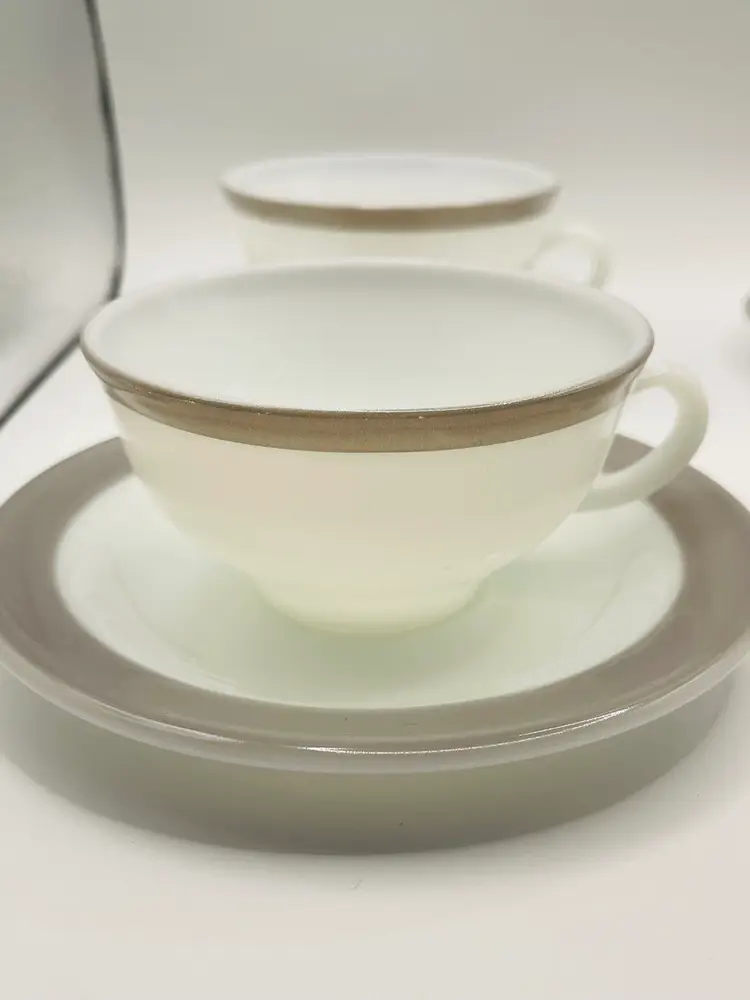 These have the dove gray coloring so. The rims of the cups and saucers.