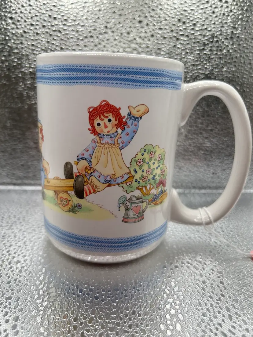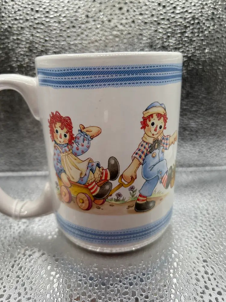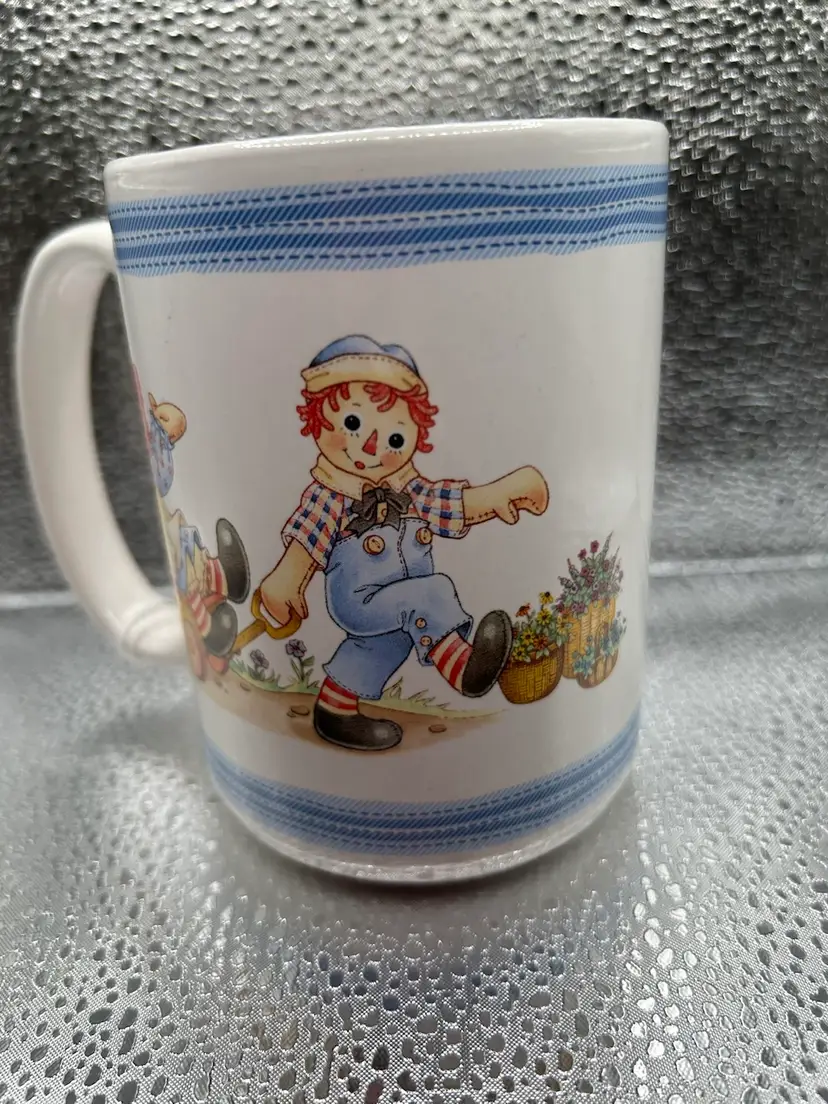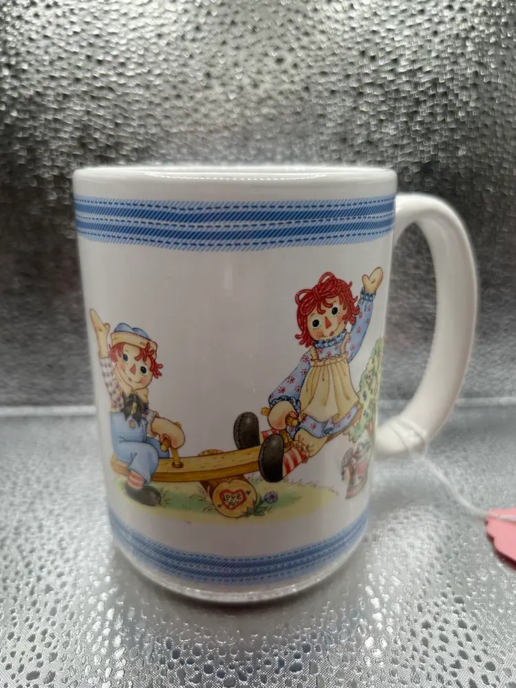4 precious coffee mugs in excellent condition with front & back raggedy Ann & Andy design.