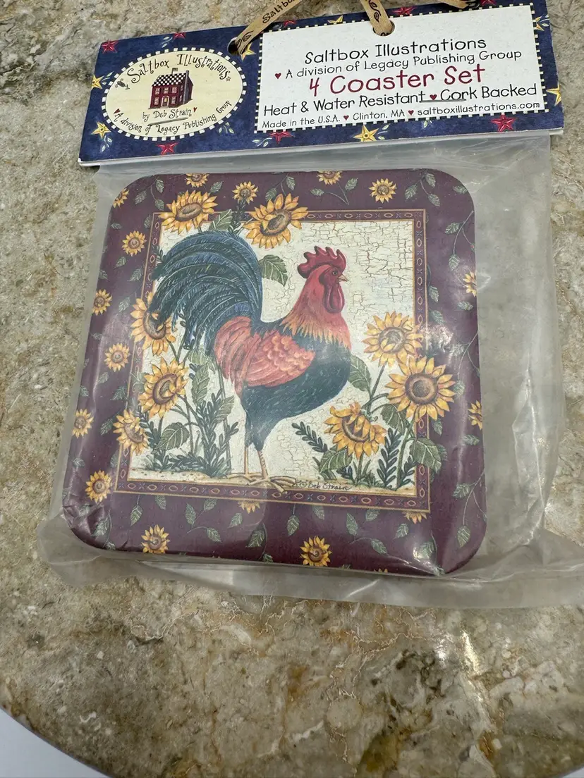 Awesome rooster coasters! Beautiful condition. And their original packaged and never used. Measures 4” X 4”