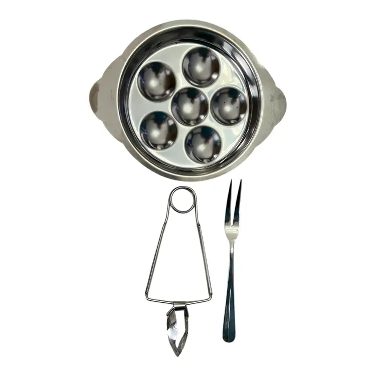 Dish: Each set comes with a stainless steel dish featuring six compartments for heating and presenting escargot.