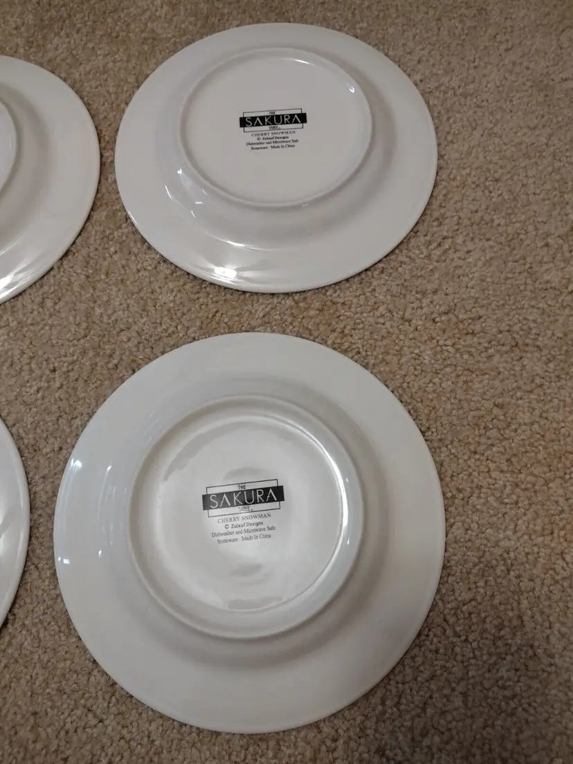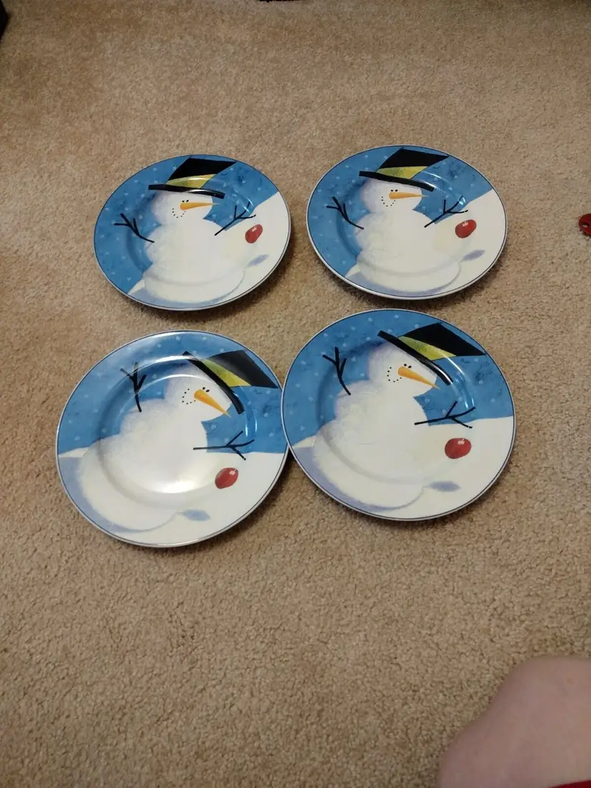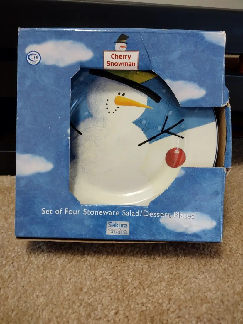 – Number of Items in Set: Four-Piece – Pattern: snowman – Shape: Round – Occasion: Winter – Color: Multicolor – Material: Stoneware – Set Includes: Plate Set – Brand: Sakura – Type: Salad Plate – Theme: snowman – Features: Dishwasher Safe, Microwave Safe