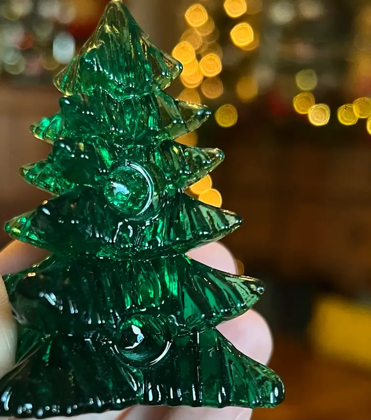 Measures 2.5x1.5” On one side of each tree- there are two small circle indentions (Not sure what they were used for.. I have photographed them)