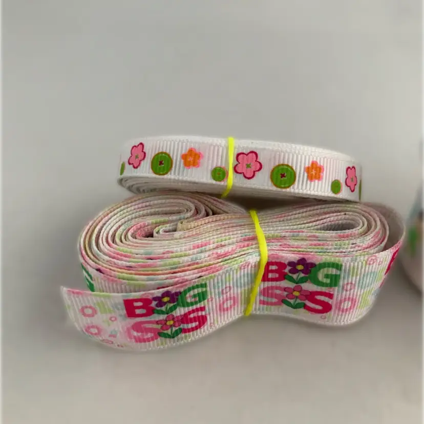 Set of 4 vintage large lengths of adorable sewing ribbon featuring girls, flowers and big sis. I did not measure each piece. There is a good amount of yardage on each one.