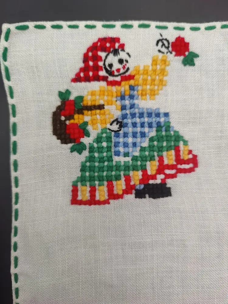 Super cute linen placemats handstitched. They come in red, green, blue and yellow. There is some light staining as shown in photos.