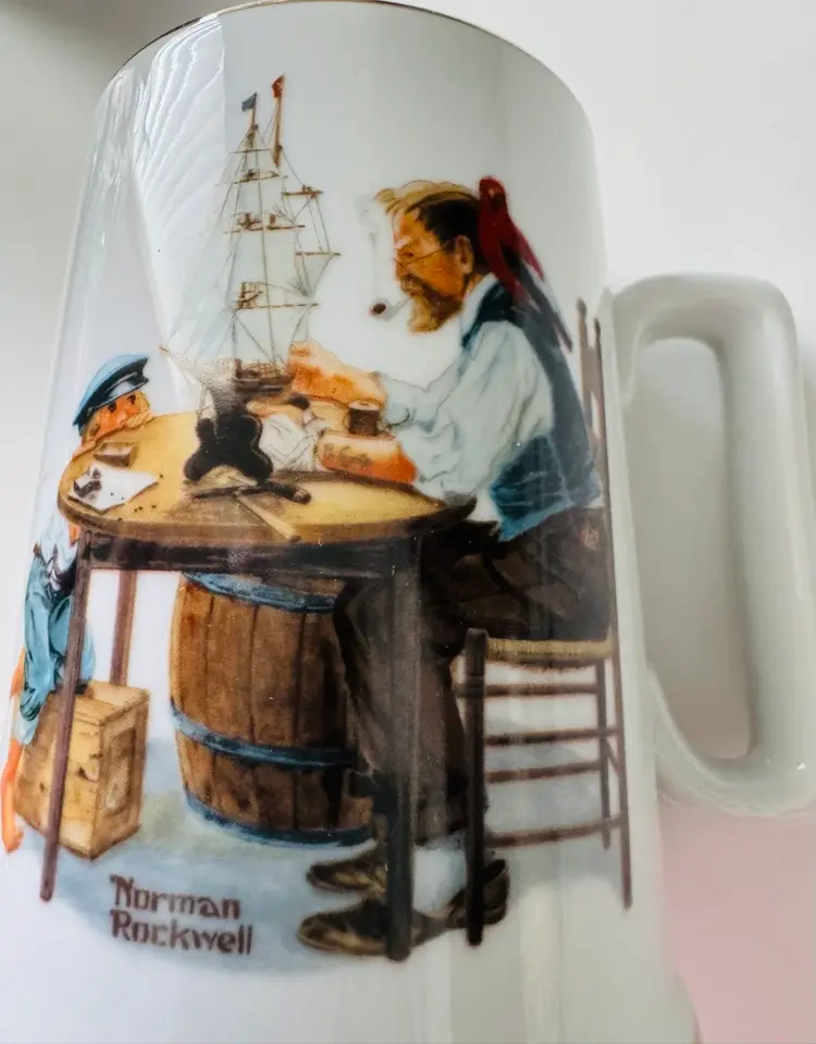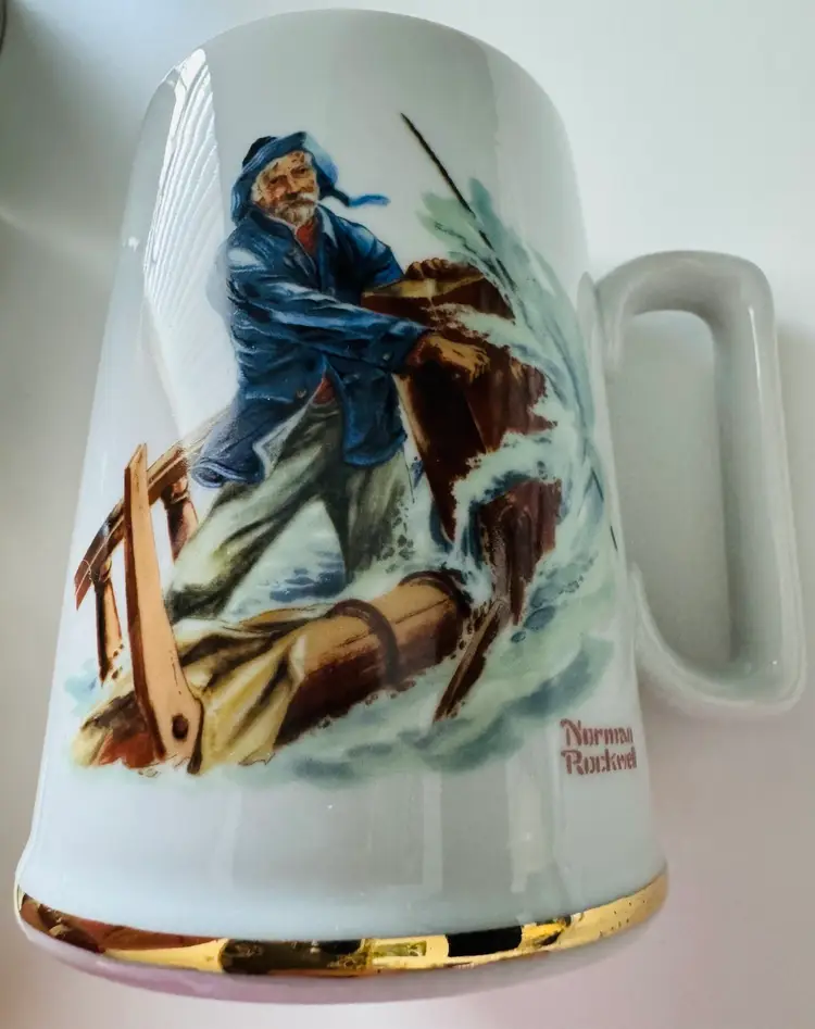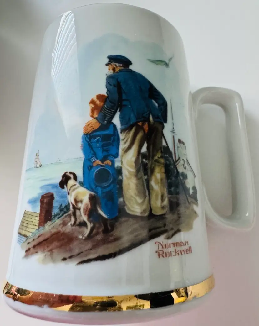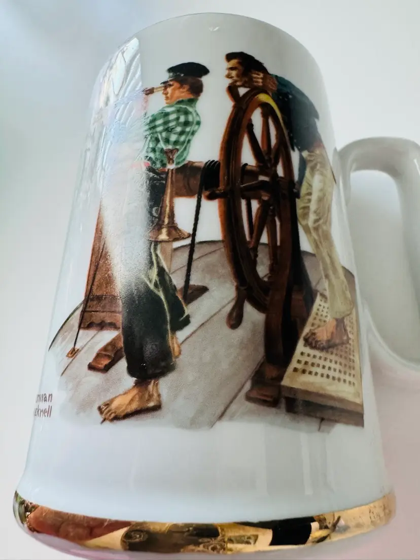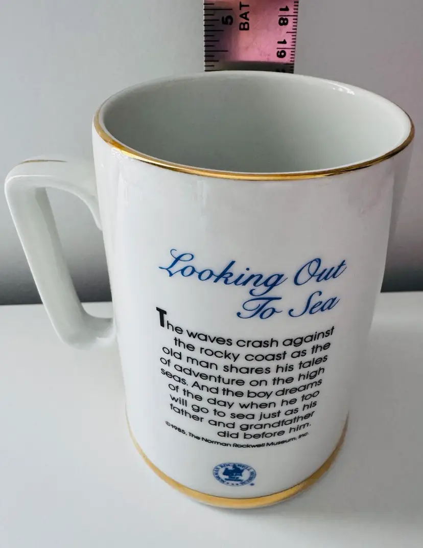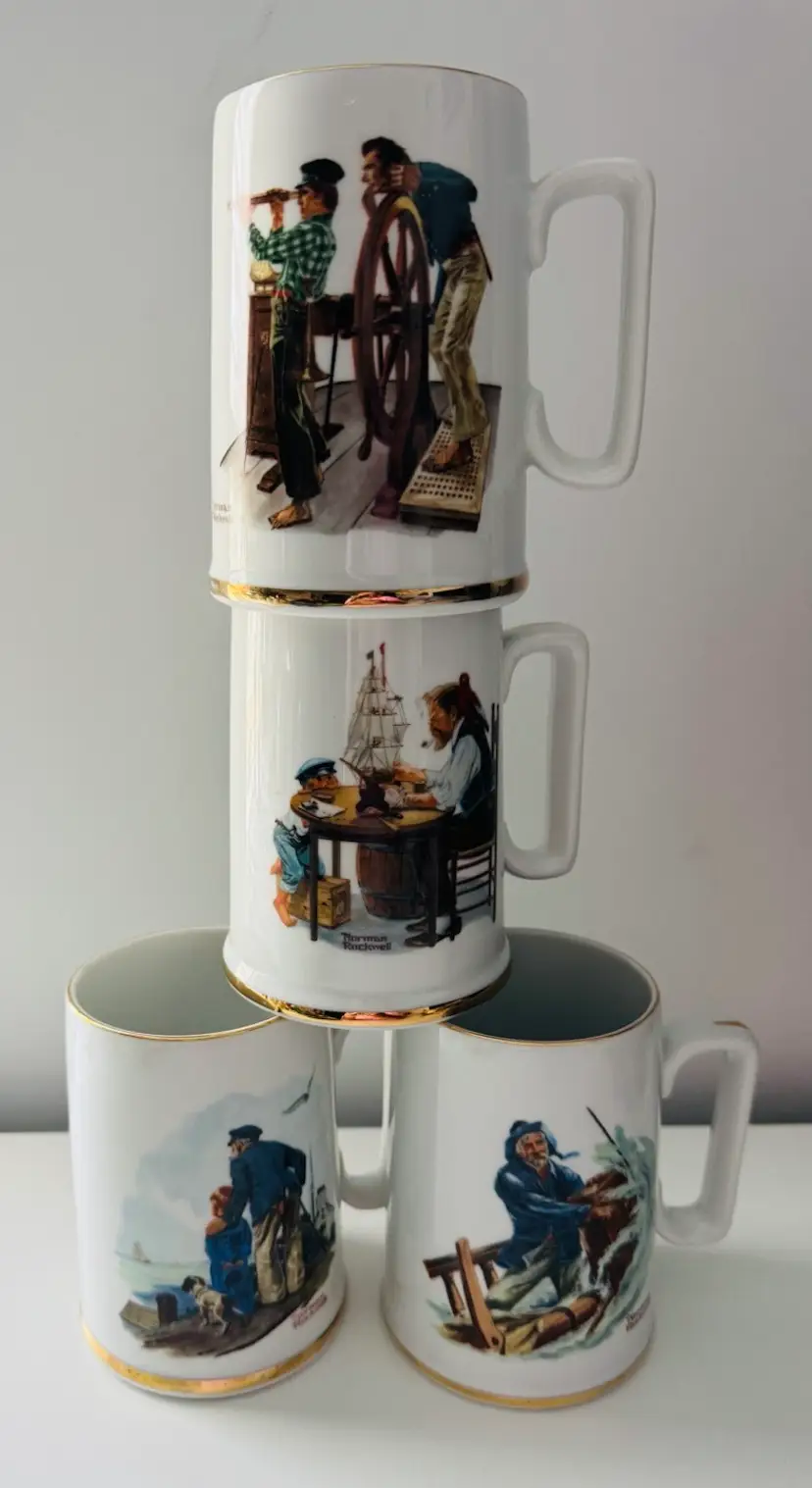 Beautiful storytelling mugs! Gold trim at the bottom.