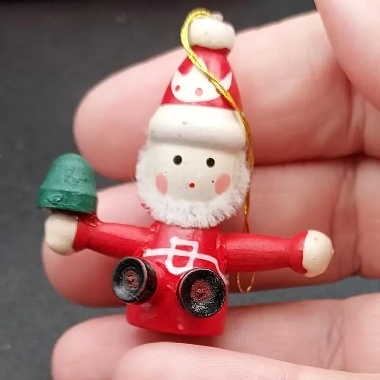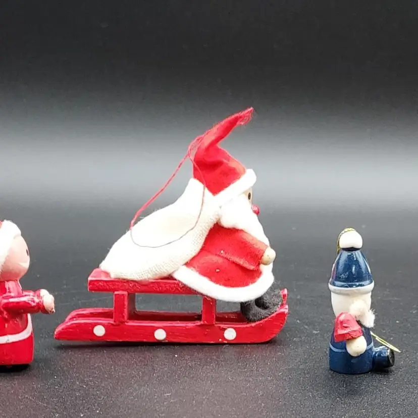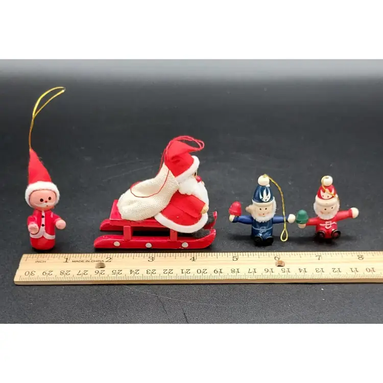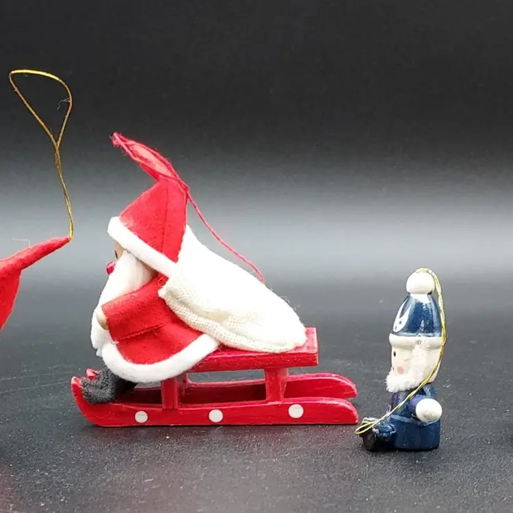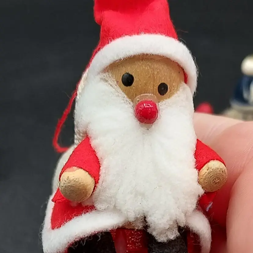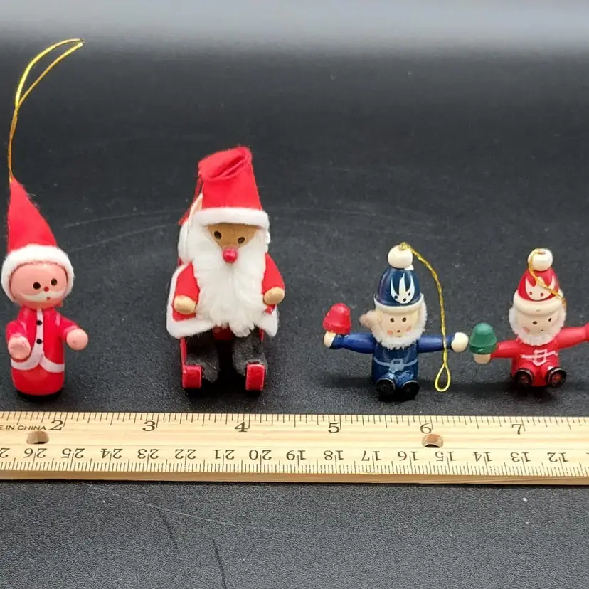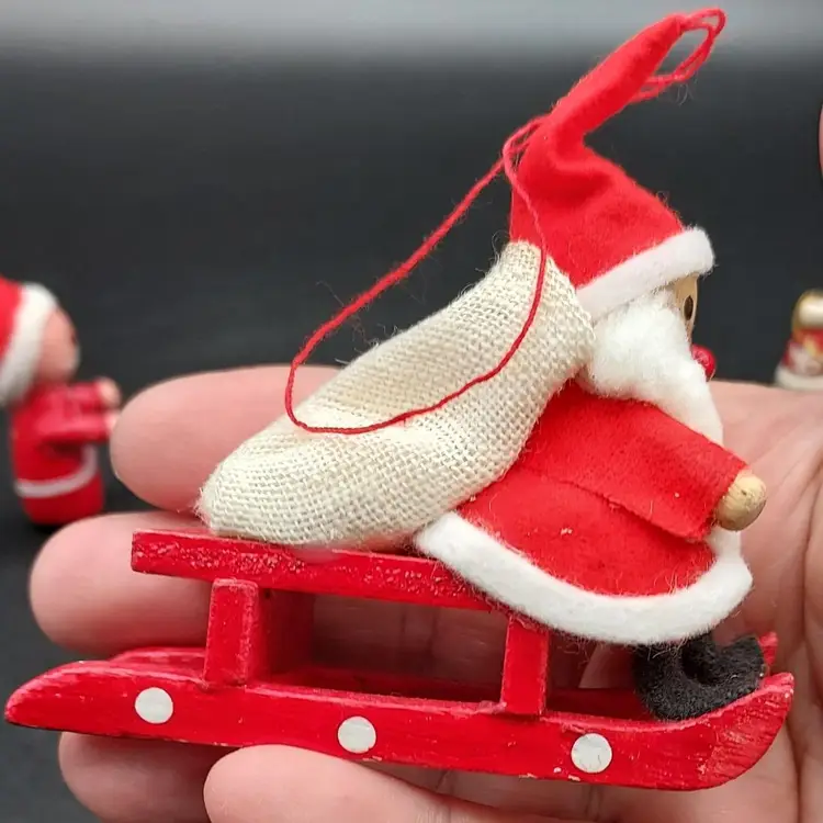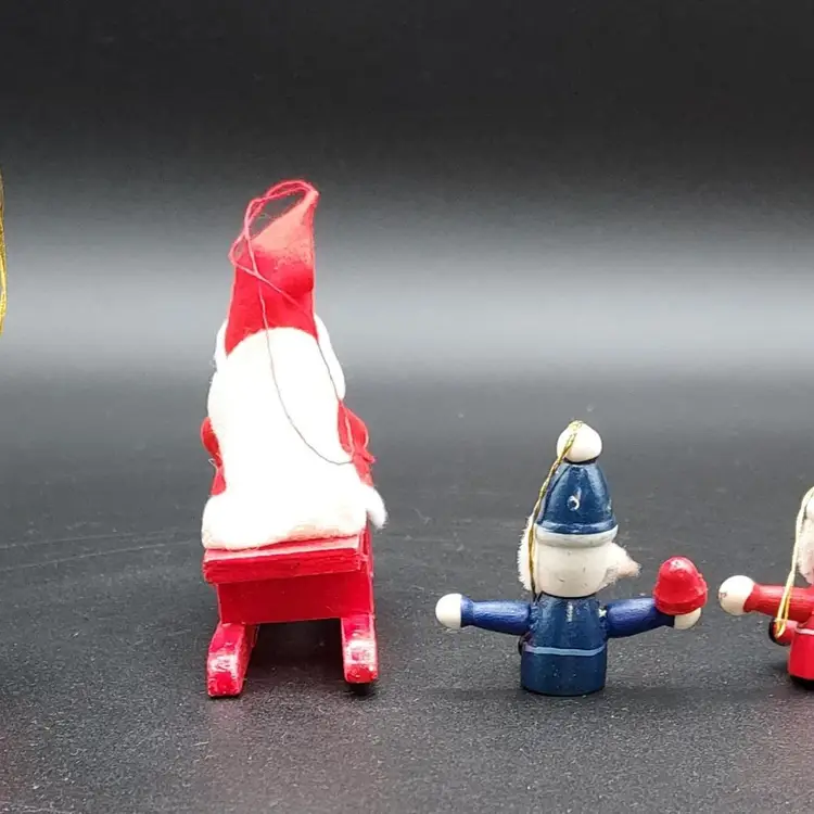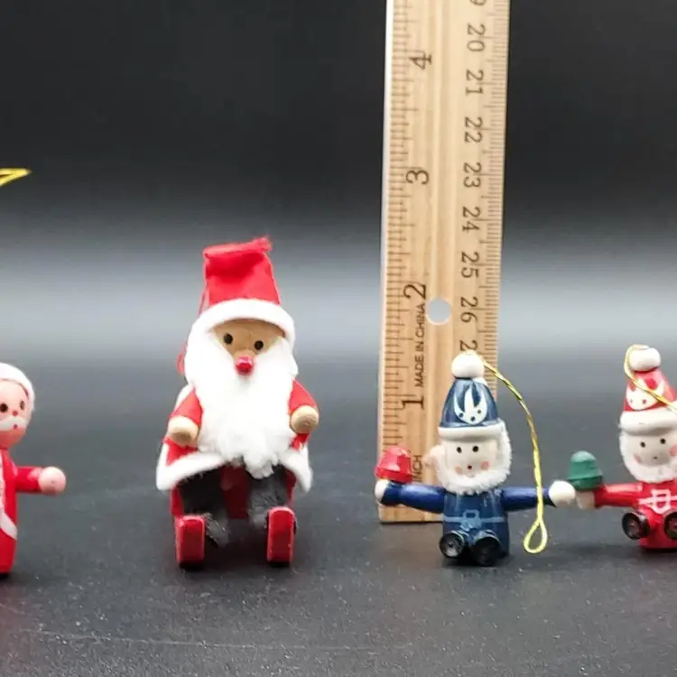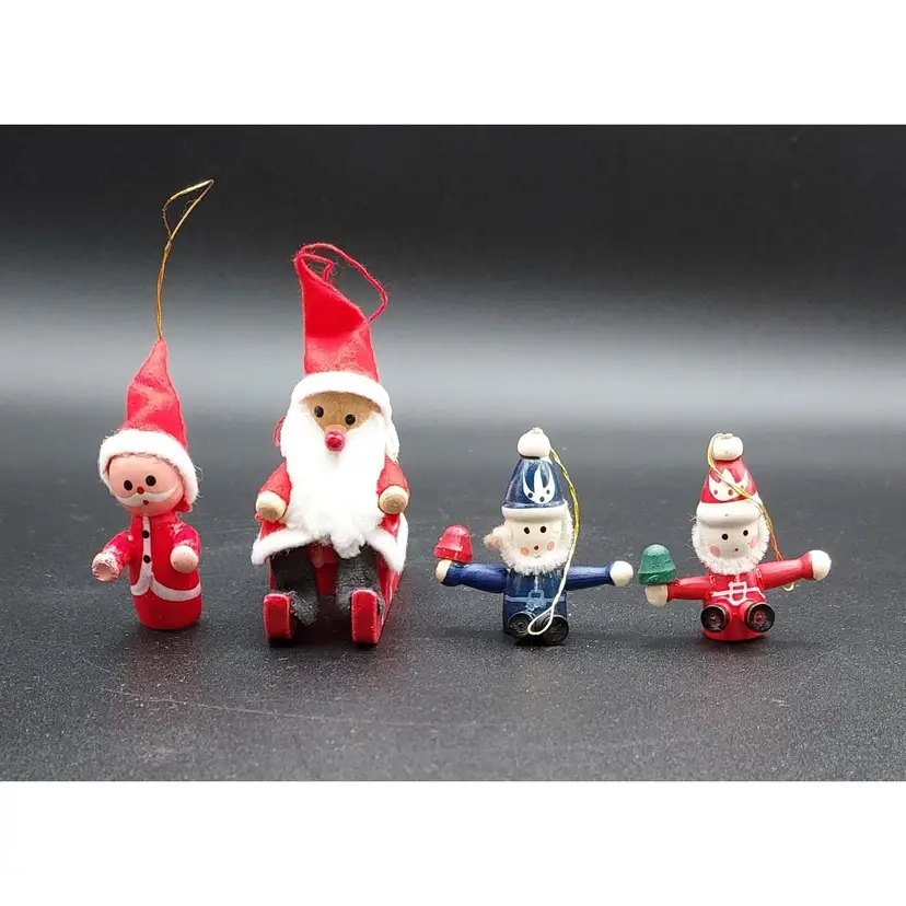 "Elevate your holiday decor with this Vintage Set of 4 Wooden Christmas Santa Ornaments. Crafted with timeless charm, these ornaments add a touch of nostalgia to your tree. The vintage appeal of wooden Santas brings warmth to your festivities. Perfect for collectors or those seeking classic holiday accents. Each ornament tells a story of tradition and craftsmanship. Don't miss the chance to own this unique set from the past. Make your Christmas tree extra special with these vintage wooden Santas. Shop now and bring a piece of holiday history into your home!"