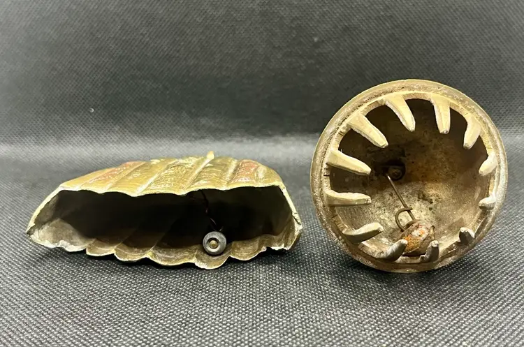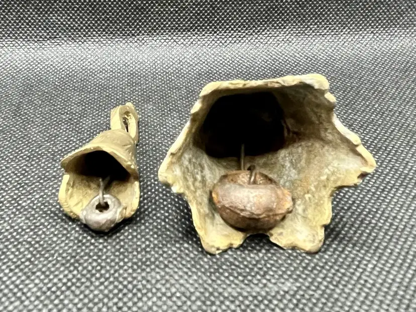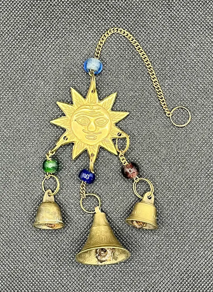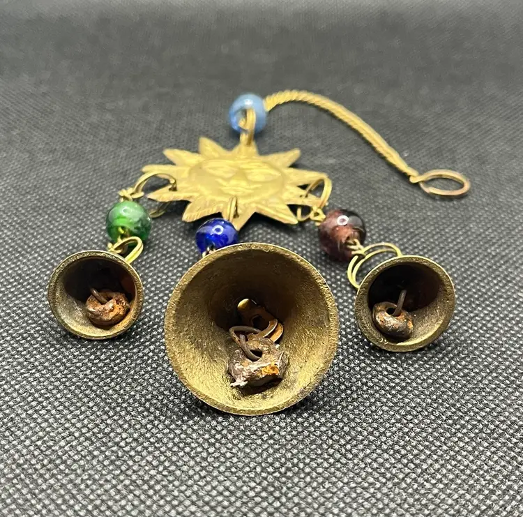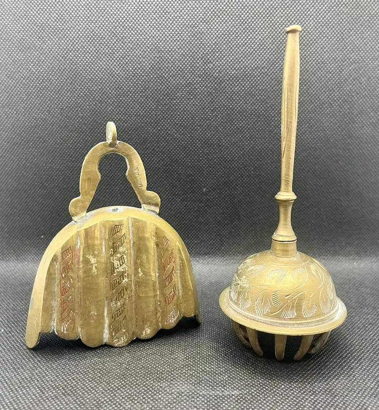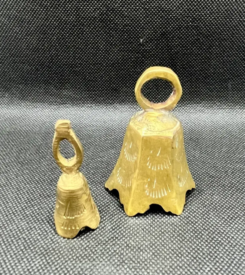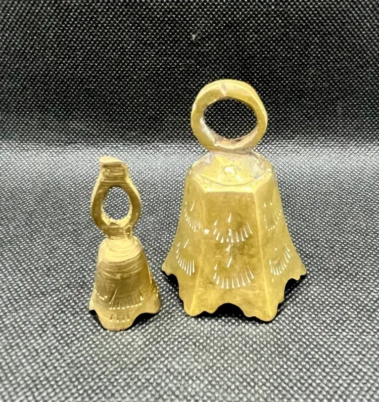 Set of 5 vintage brass bells from India. Each bell has a lovely sound. Some minor aged patina and wear. See photos.