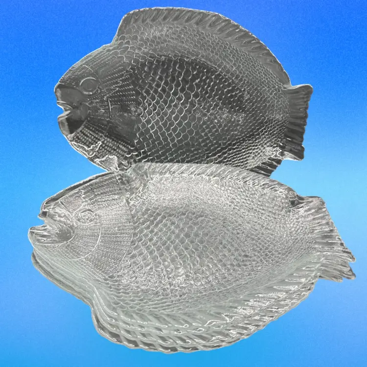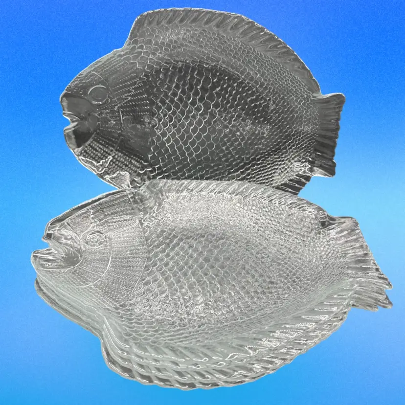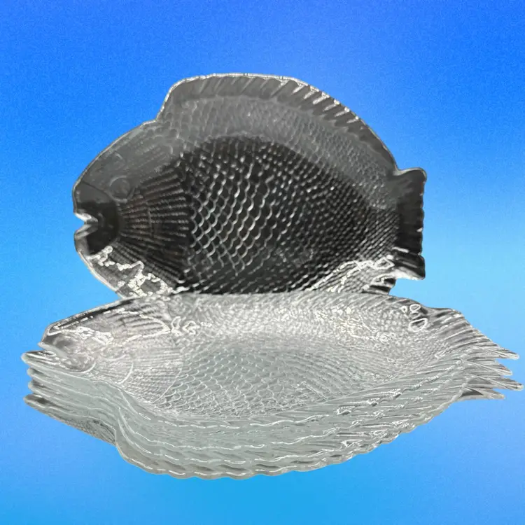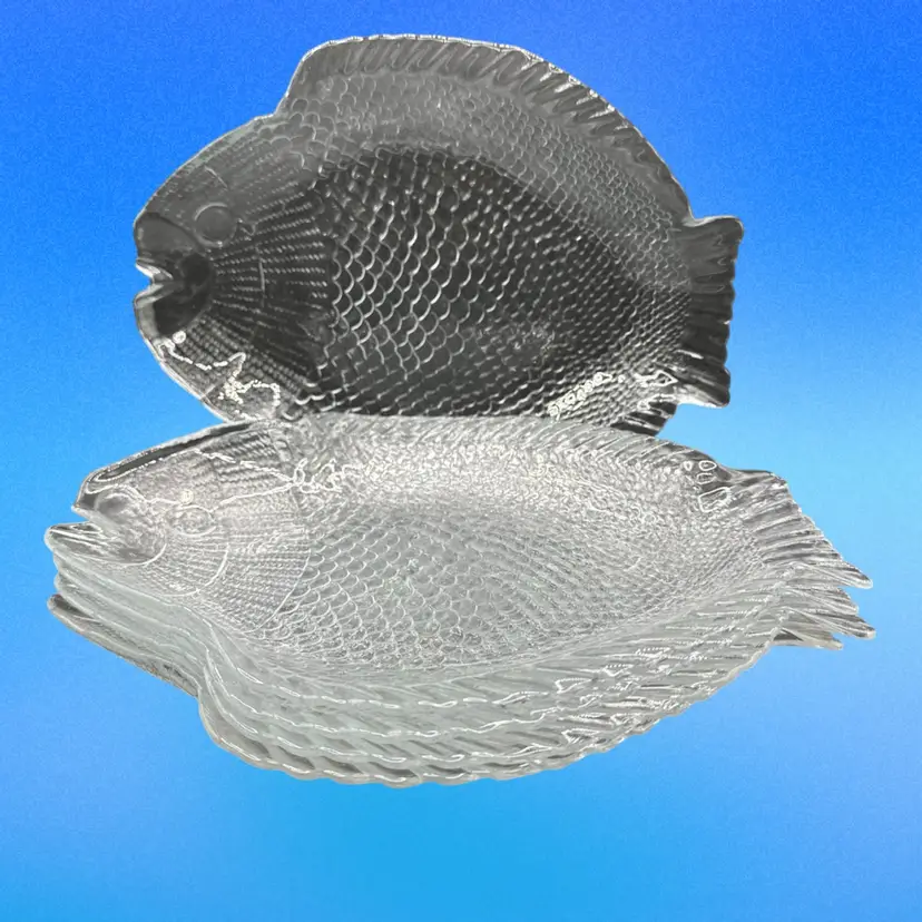 This set of (5) Pasabahce fish shaped textured plates is perfect for serving fish-themed meals, Sushi or snacks. ASABAHCE Turkish Glass Fish Plate Nautical Marine Plate Sushi Dish Serving Seafood Platter (Single Plate) Made In Turkey The clear glass plates feature a unique fish-shaped design, making them suitable for all occasions. Measuring 10”x 8”, these plates are both stylish and practical for your dining needs. Made of high-quality glass, these plates are sure to add a touch of elegance to your table setting.
