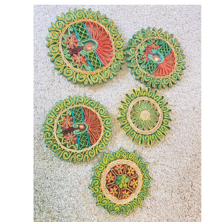Set of 5 different sizes. Beautiful and bright colors. Boho decor. Wall hangers