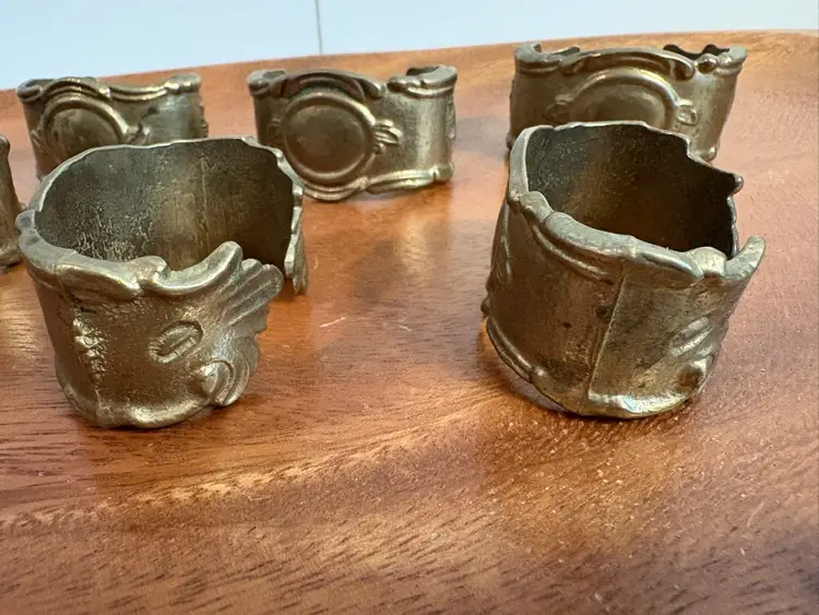 Set of antique brass napkin rings, French vintage, brocante, elegant table decoration, boudoir, shabby chic. Despite their delicate appearance, they are surprisingly heavy.
